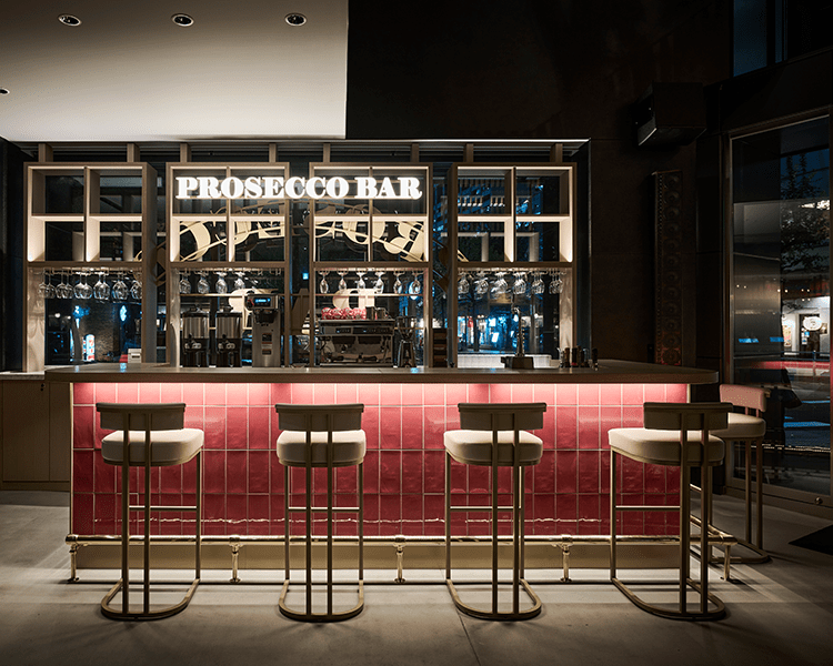 A new aperitivo-style waiting bar where you can casually enjoy “Prosecco,” a sparkling wine that represents Italy. It can also be used as a meeting spot along Ginza Corridor.