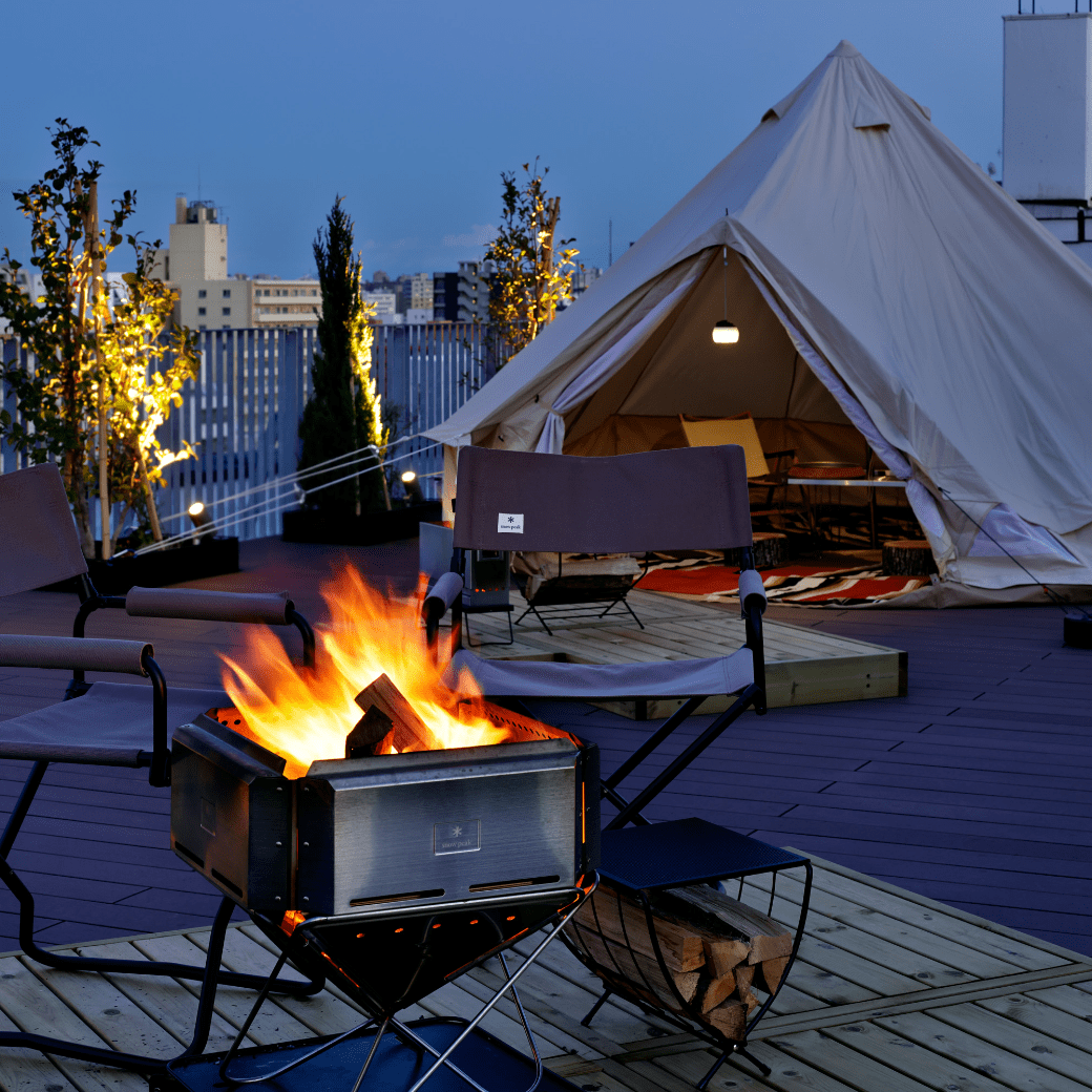 ウッドデッキの床で仕上げられた屋上は、焚き火や屋外シアター、⾳楽イベントなどあなたらしく過ごすCANVAS空間。