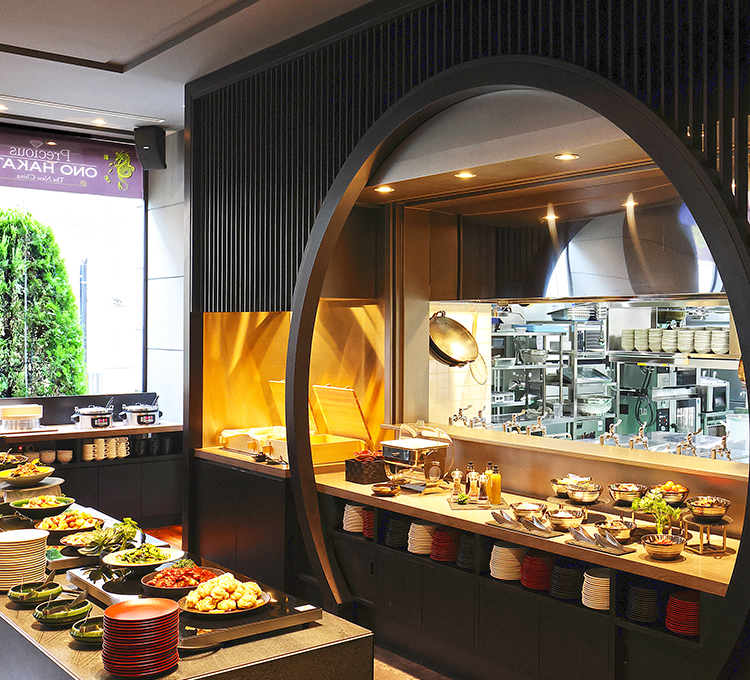 「福岡県名物筑前煮」などの福岡名物に、「山椒香る胡瓜と大根の四川風涼菜」や「四川漢源山椒白麻婆豆腐」などの中華料理。福岡の中華ダイニングならではのお料理をブッフェ台より自由にお取りください。