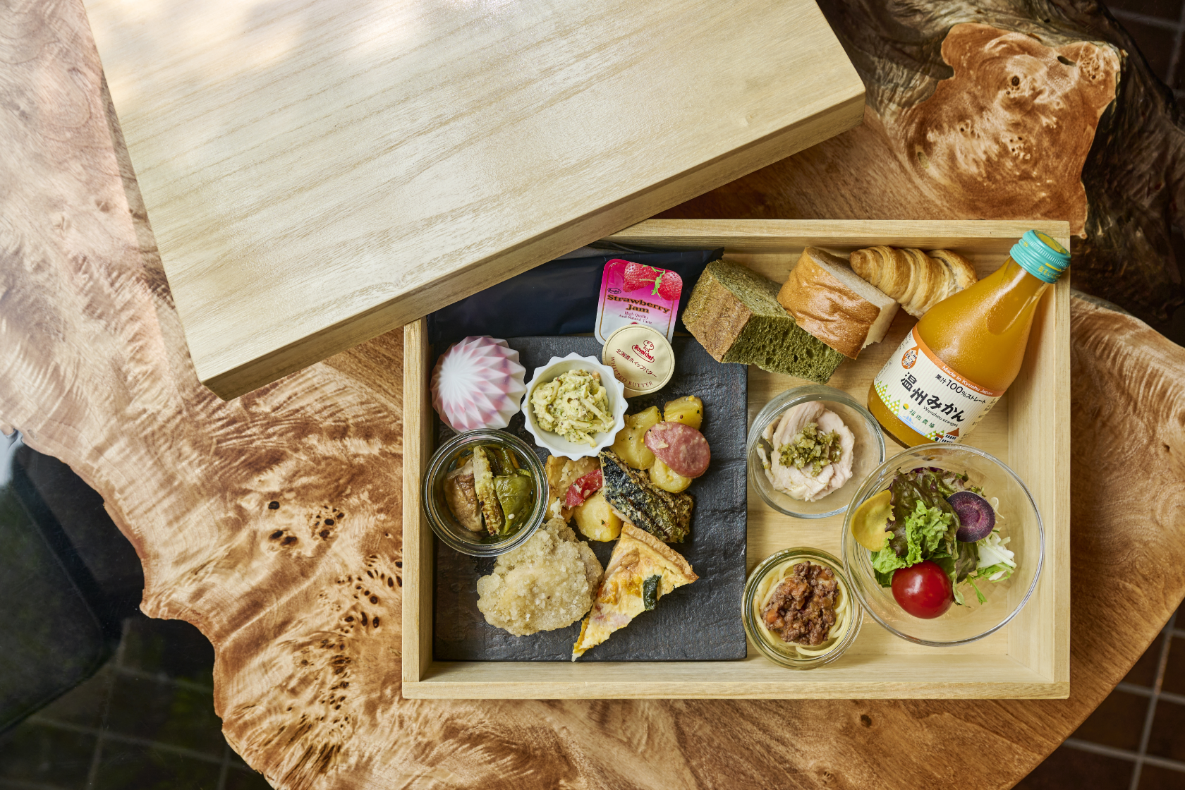 モーニングBOXをお部屋までお届け。のんびりと寛ぎながら食べて、1日の良いスタートに。