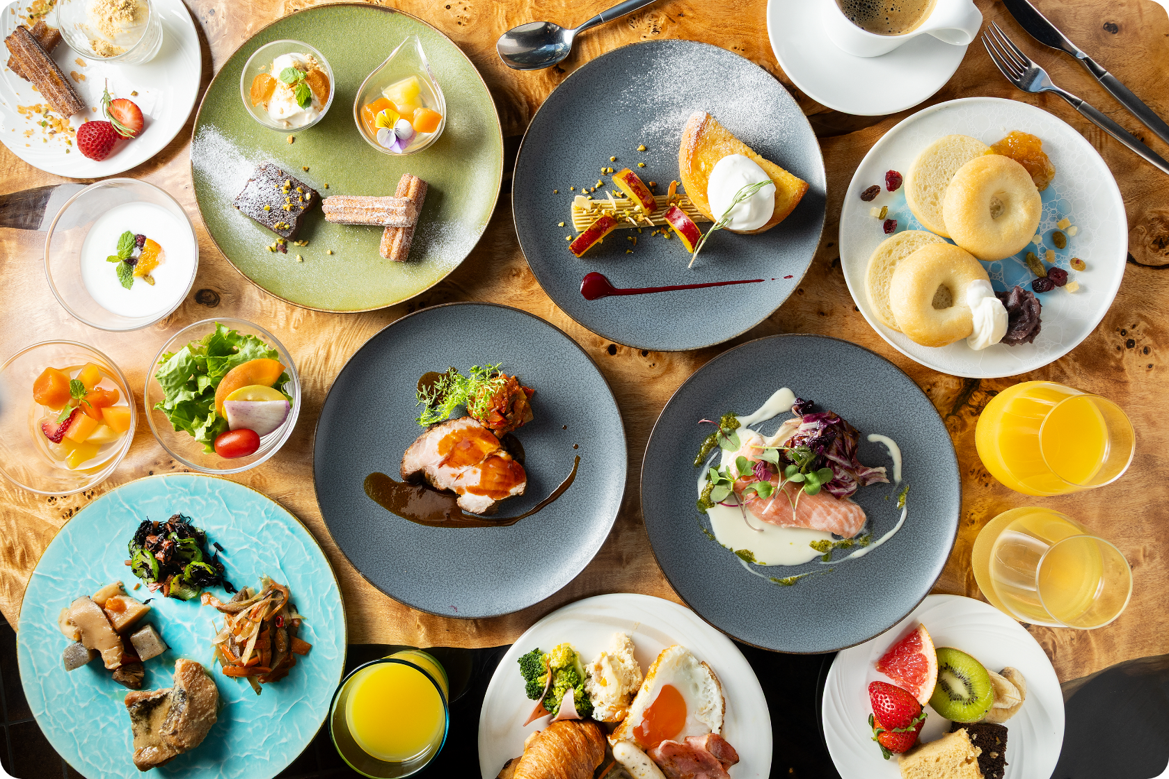 豊かな風土に育まれた九州地方の食材を、九州の薪で調理して提供するレストランの朝食をはじめ、選べるキャンバスラウンジの朝食、そして客室などで楽しめるモーニングBOX。今回はどの朝食にしようか、選ぶその時間も楽しんで。