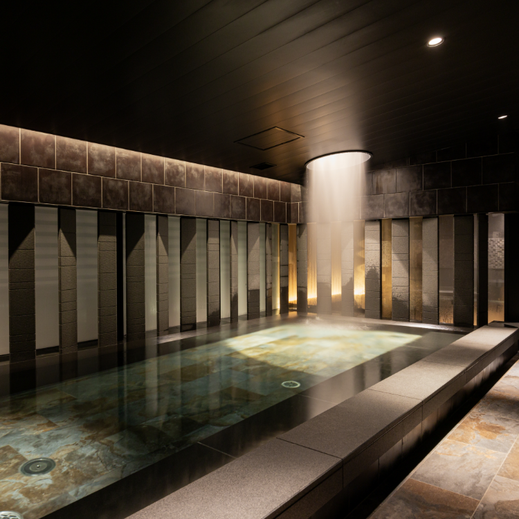観光やビジネスからホテルに戻ったら、お部屋でのんびりしたり、キャンバスラウンジで過ごしたり、大浴場やサウナ、湯上りラウンジでリフレッシュしたり、その日の気分で自由に楽しめるのもキャンバス福岡中洲の魅力。“九州の渓谷”をイメージした大浴場は、降り注ぐミストシャワーや揺れ動く光が幻想的。