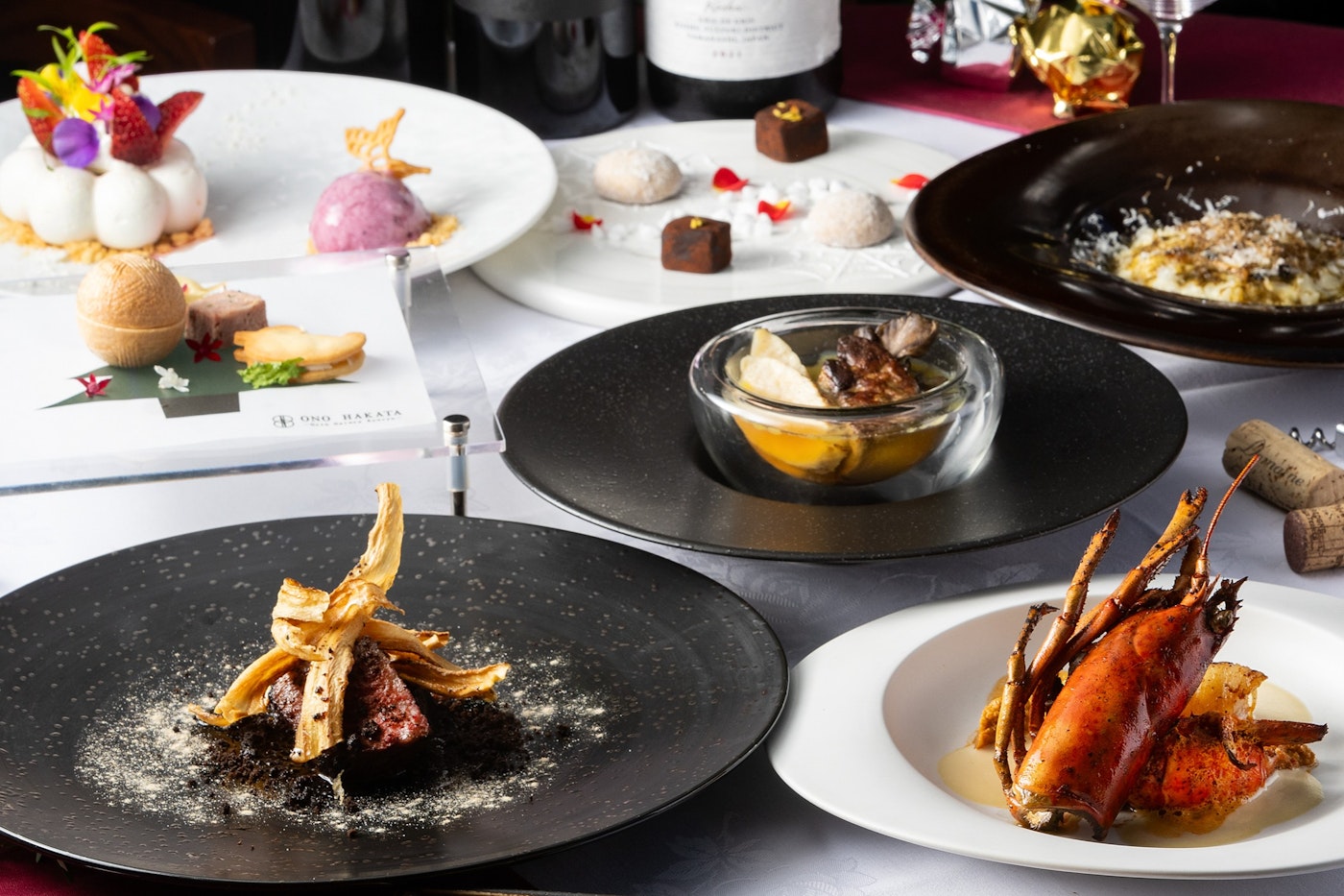 2025年12月20日(土)~12月25日(木)までクリスマス限定のコースメニュー「2025 ONO HAKATAクリスマス」を提供いたします。ディナーコースでは、黒毛和牛を味わう全7品のハーフコース、オマール海老やリゾットを加えた全11品のコース、バーテンダーが考案したオリジナルカクテルを含むペアリング付のフルコースからお選びいただけます。大切な人との心温まるクリスマスのひとときに、ぜひご利用ください。