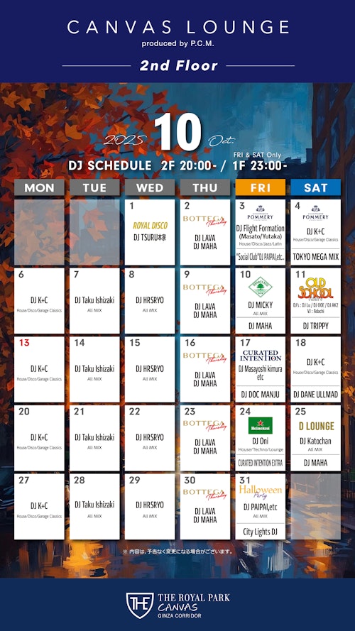 人が集い、セレンディピティな出会いが生まれるキャンバスラウンジ。深夜まで繰り広げられるDJ ライブが、ラウンジ全体を音と光と映像のミックスで盛り上げます。