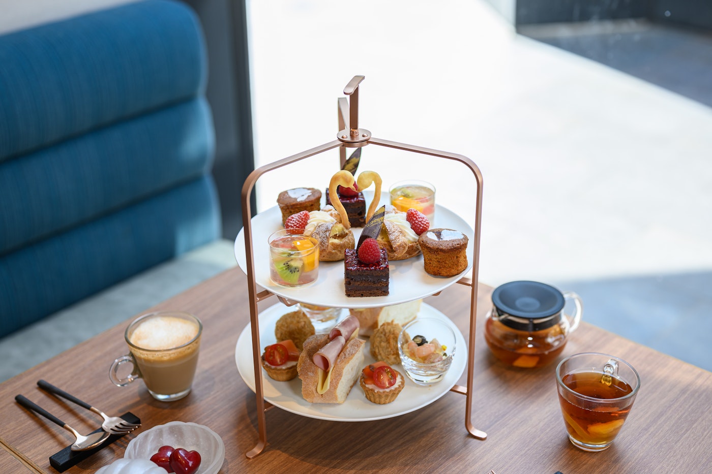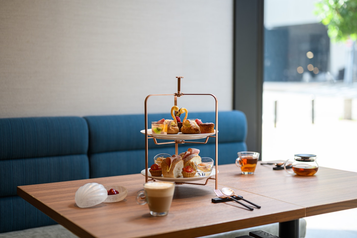 海や港町をイメージしたアートワークに囲まれたモダンなラウンジで、神戸の美味しさがギュッと詰まったティータイムをお過ごしください。