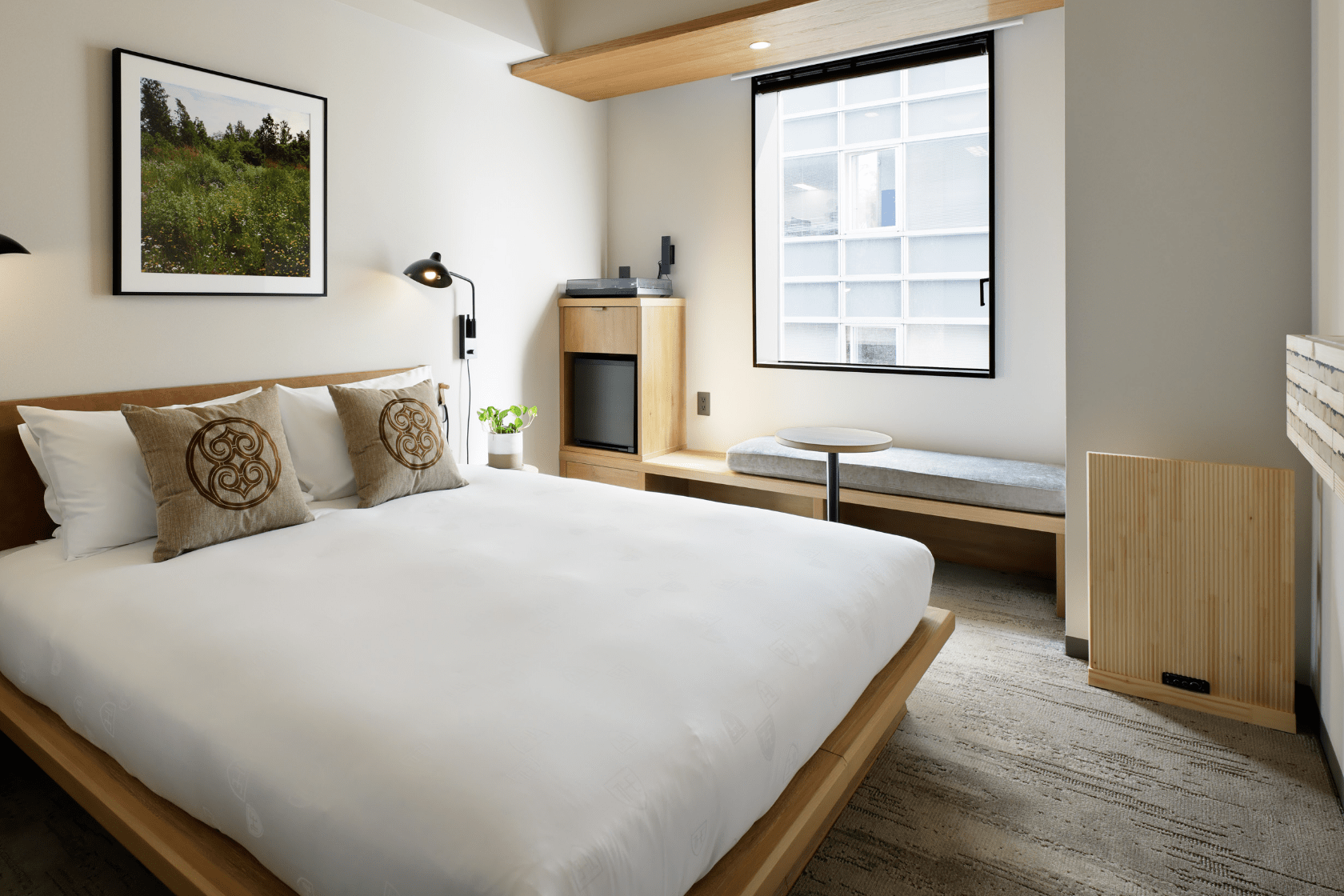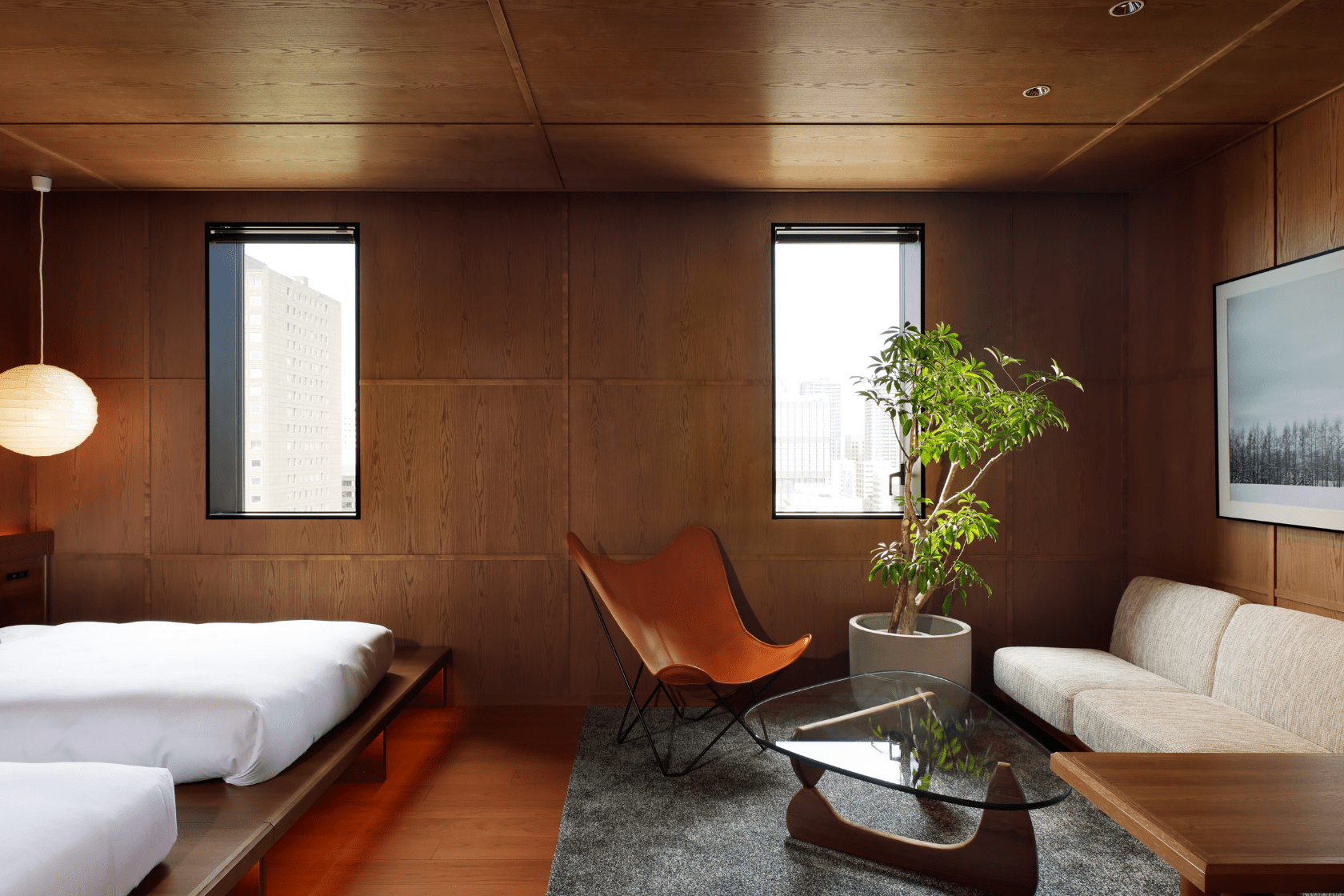 北海道産木材を使った優しい空間と、大通公園に面したパークビューの各階に1室のみ、29.7㎡のツインルーム。