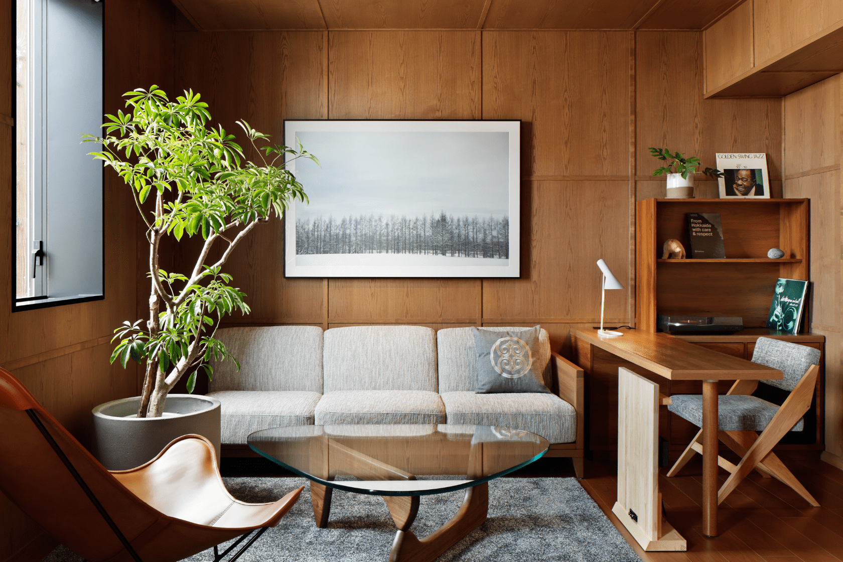 室内に飾られるアートは、北海道をテーマにした購入可能なアートピクチャ。