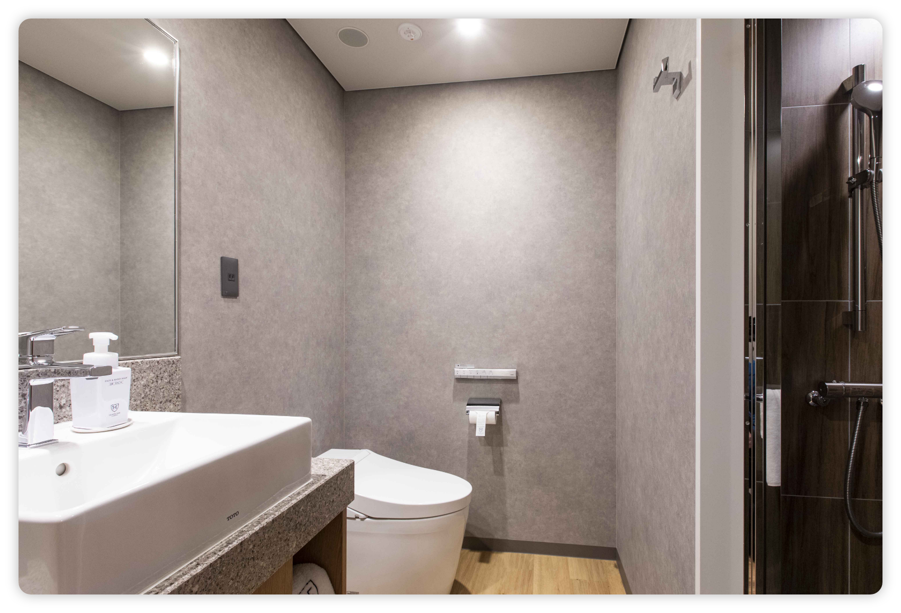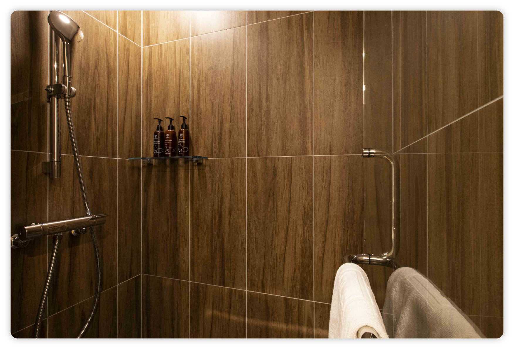 木のぬくもりが伝わる、シャワーブースのみのお部屋です。