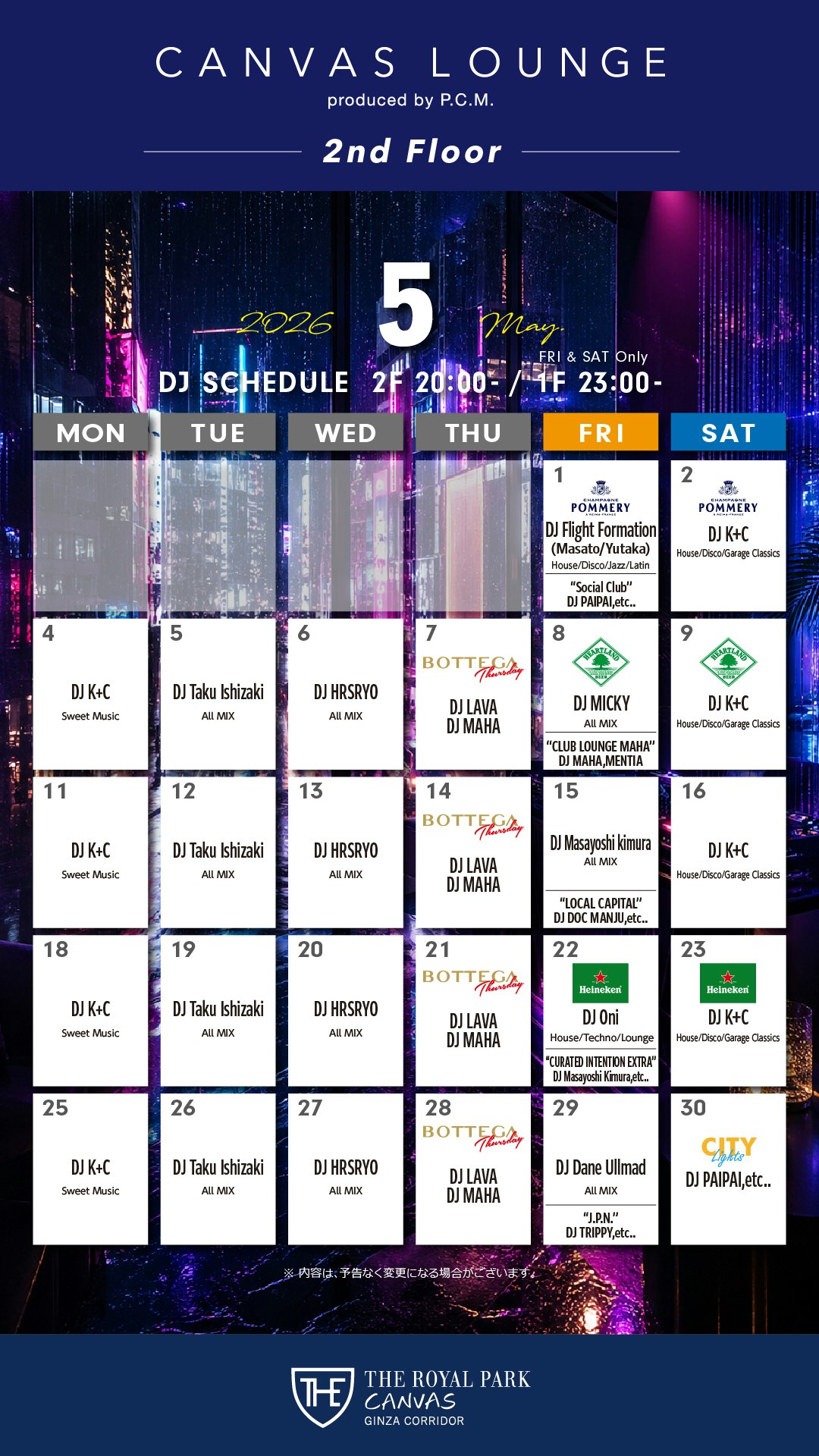 Canvas Lounge on The 2nd FloorDJイベント コアタイム 20:00~23:00