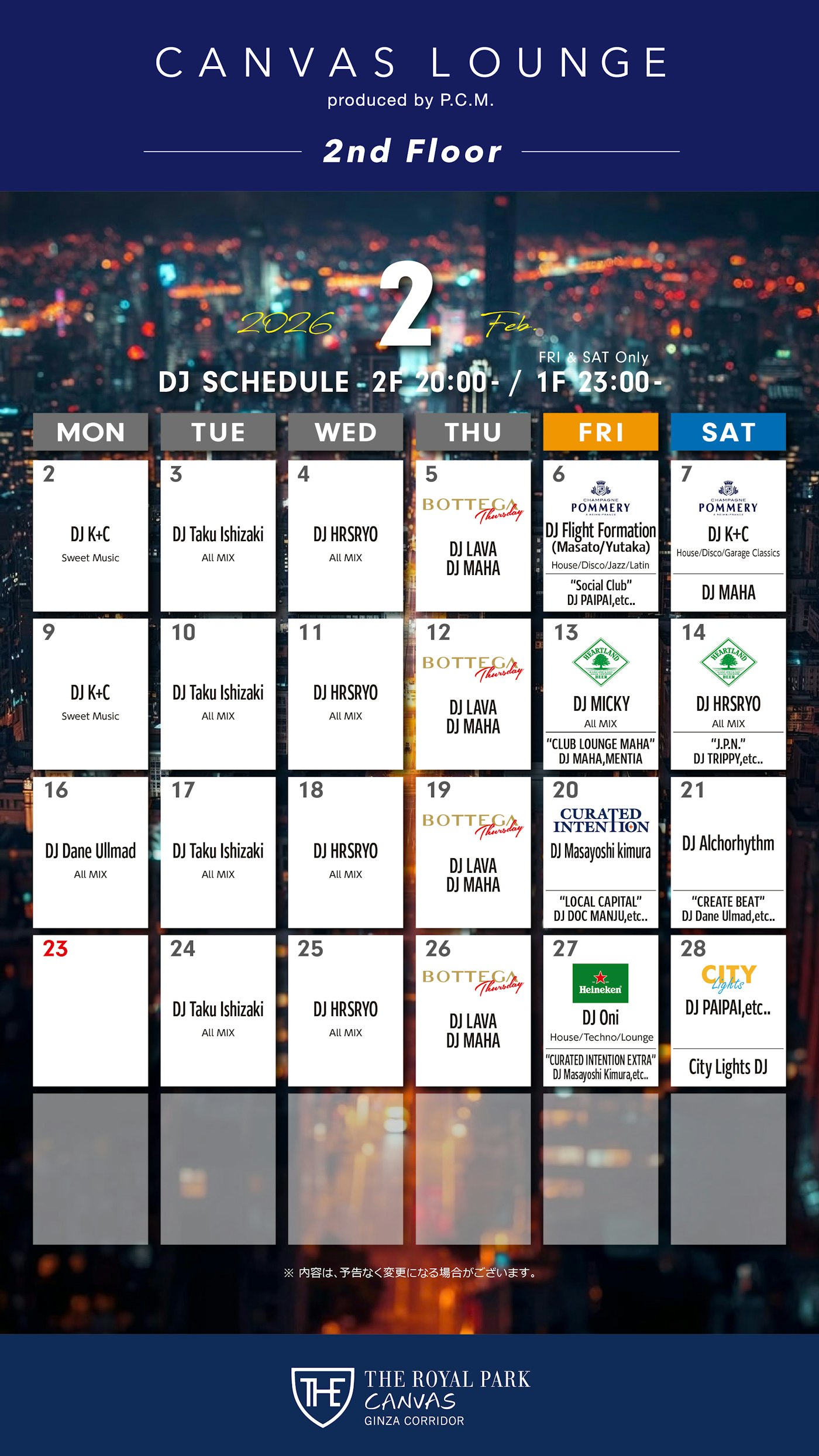 Canvas Lounge on The 2nd FloorDJ Event core time 20:00-23:00