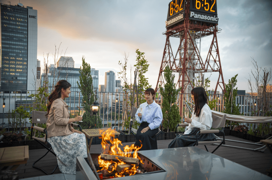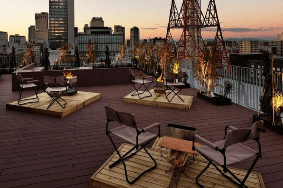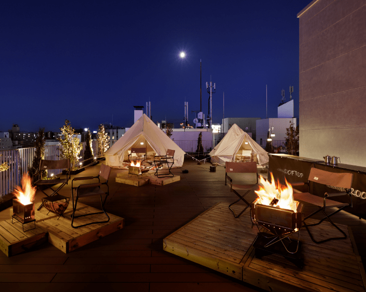 ウッドデッキの床で仕上げられた屋上は、焚き火や屋外シアター、⾳楽イベントなどあなたらしく過ごすCANVAS空間。
