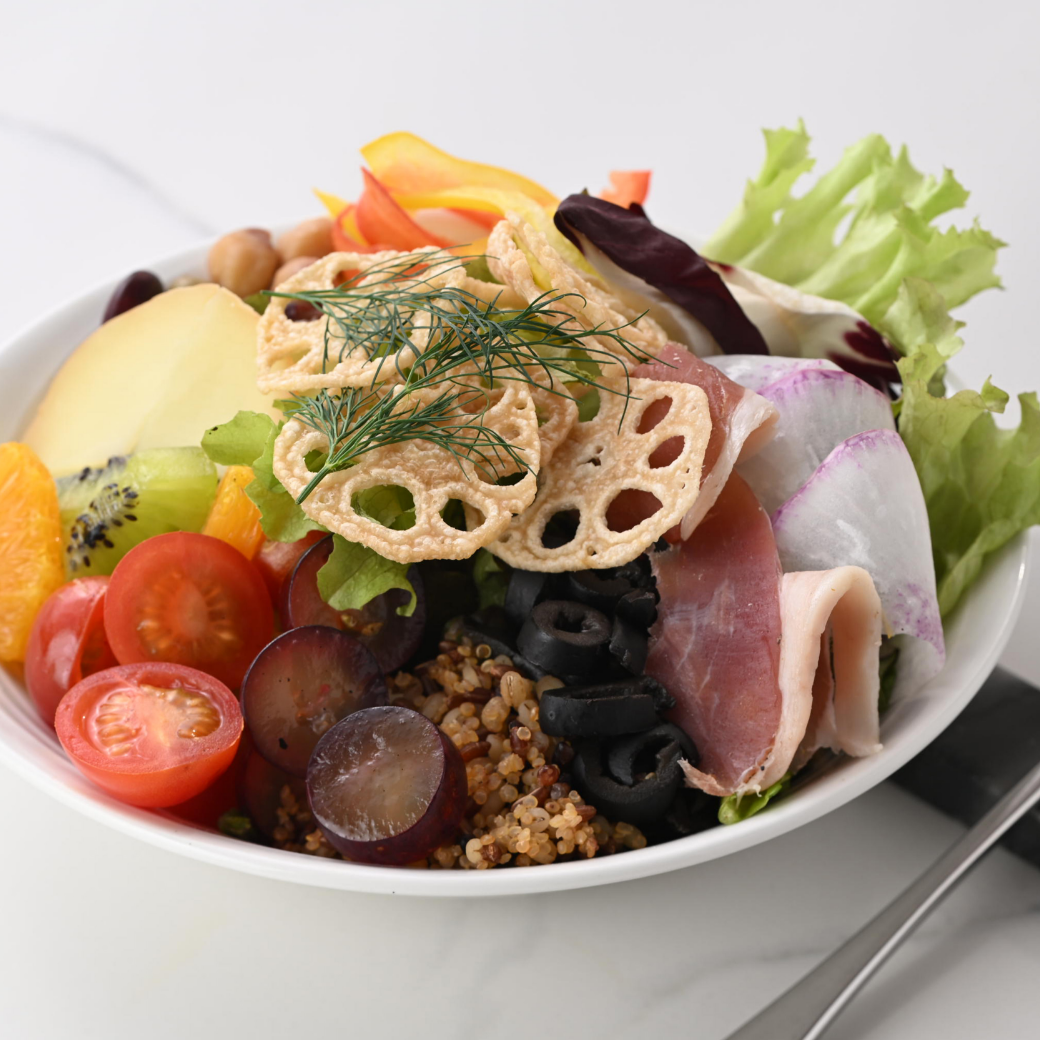 A wellness salad is a combination of vegetables, fruits, protein ingredients, and toppings, allowing you to efficiently consume a variety of nutrients, including dietary fiber, vitamins, minerals, and protein, in just one dish.
