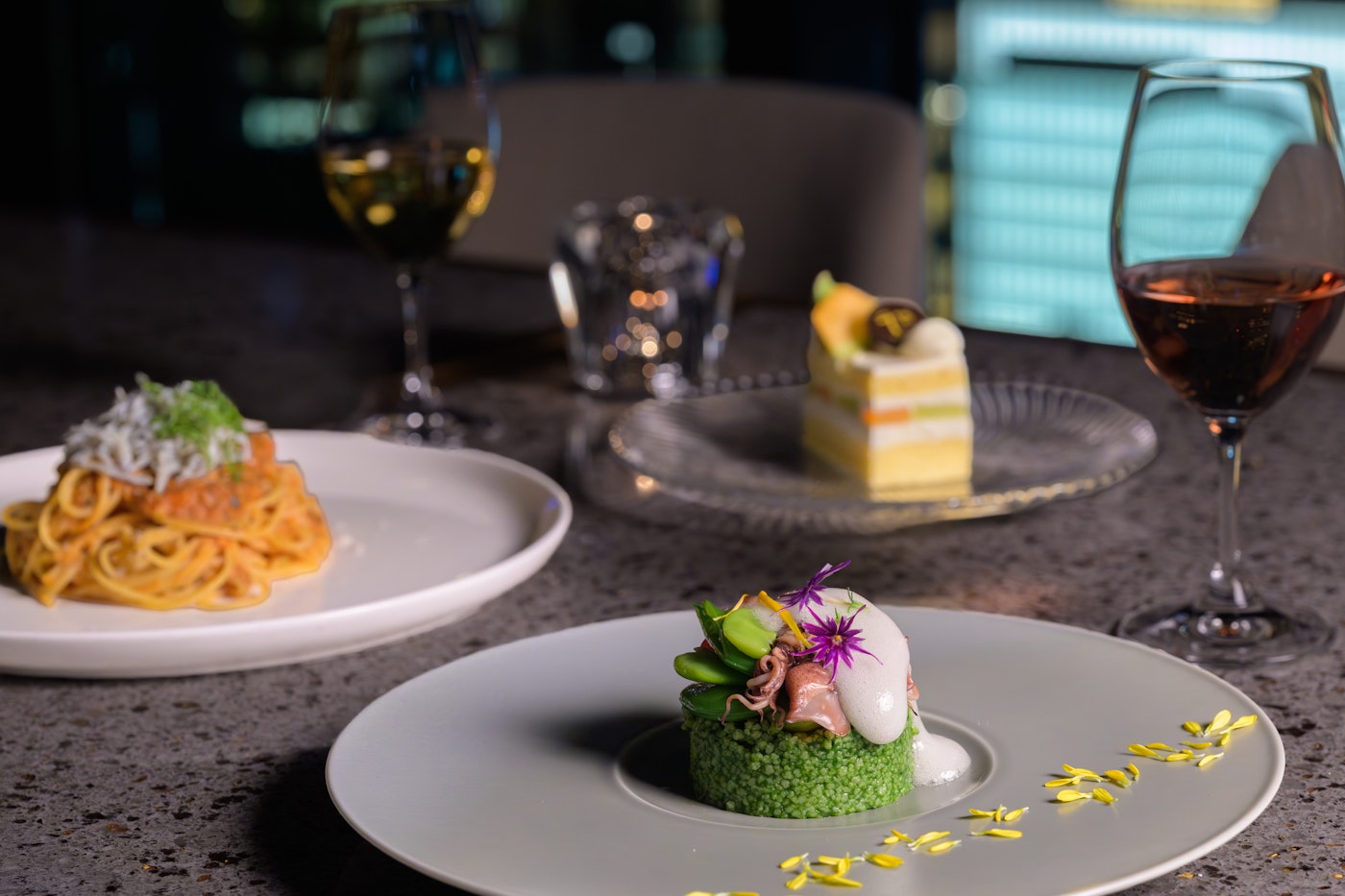 Enjoy a stylish and exciting time with delicious food on our terrace seats, which connect you to the city and the sky.