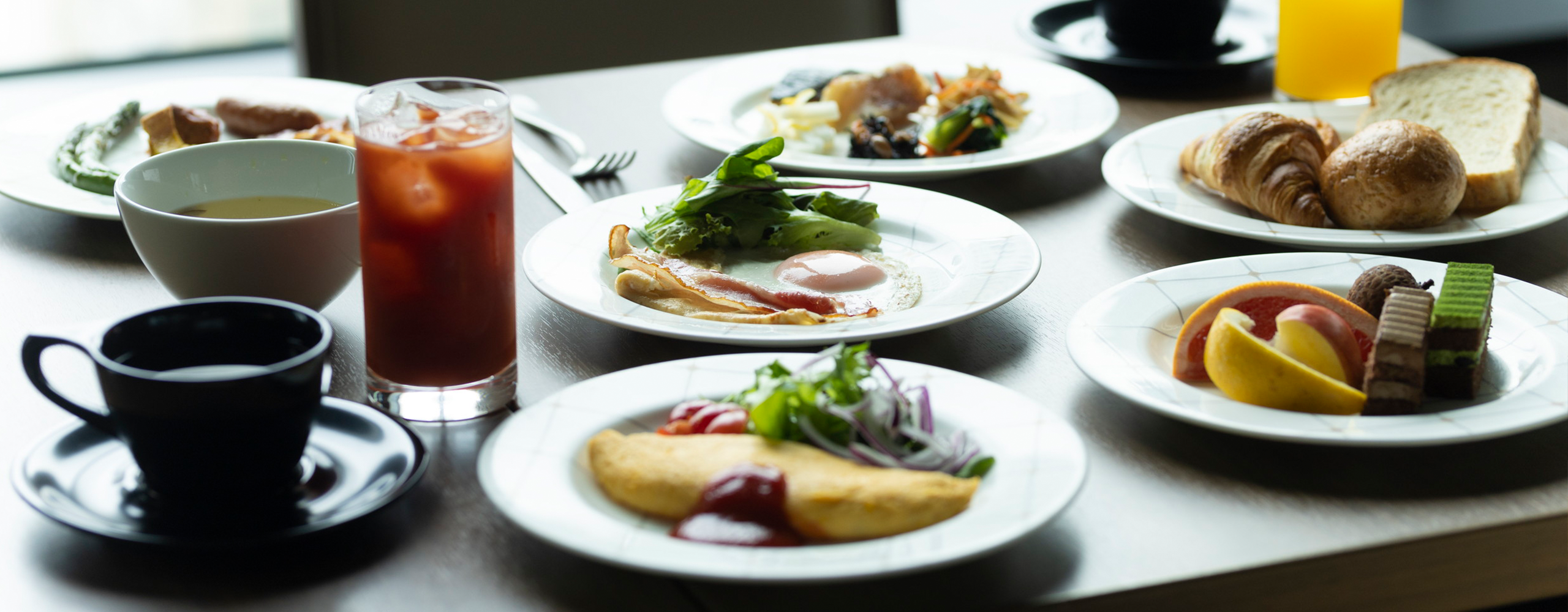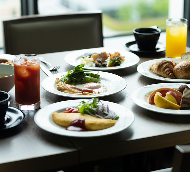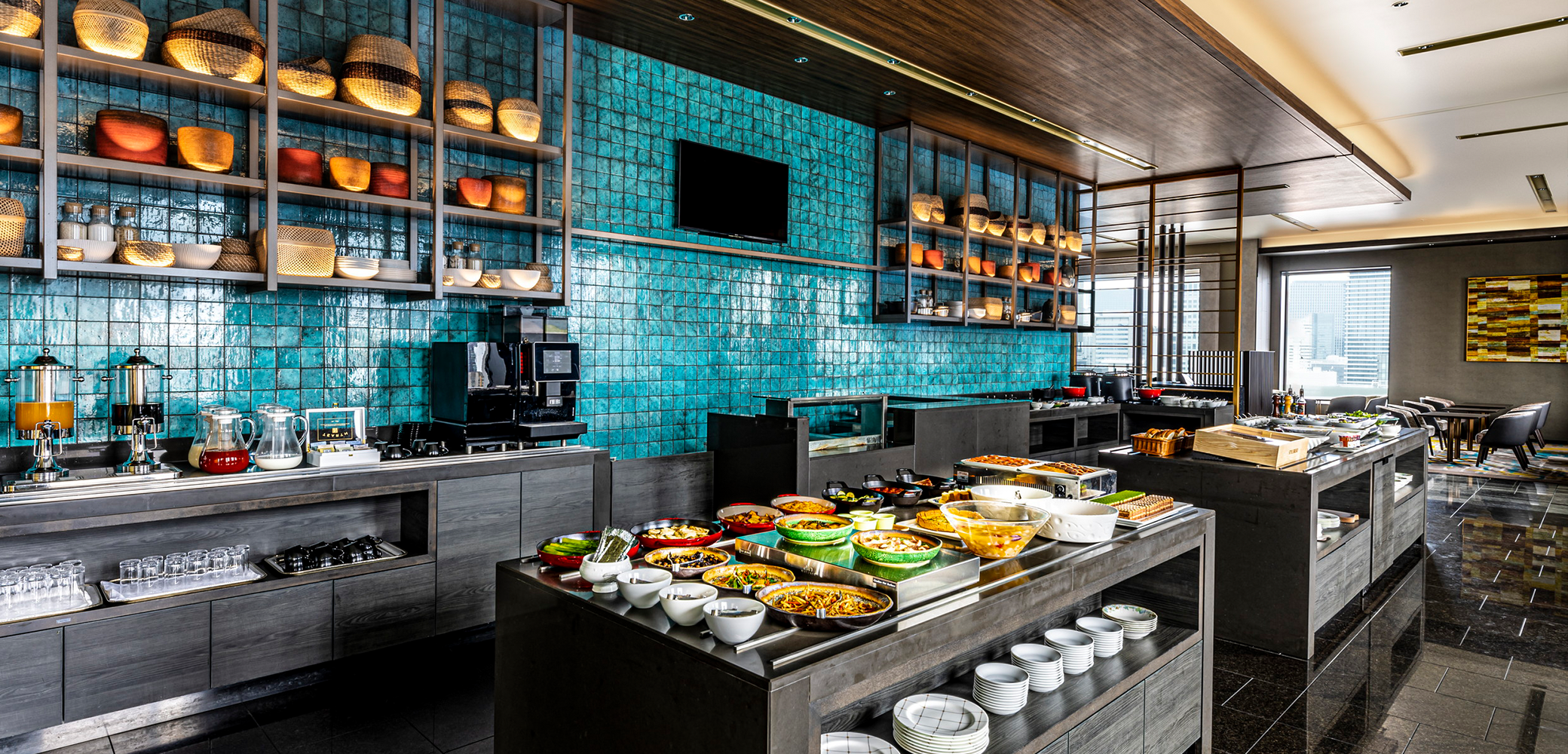 For guests staying on the executive floor, a buffet breakfast is served in the lounge on the 25th floor. Omelettes and fried eggs are prepared in the live kitchen in the lounge. A salad bar is available at the buffet counter. Enjoy breakfast while looking out at the city of Osaka from about 100m above ground.