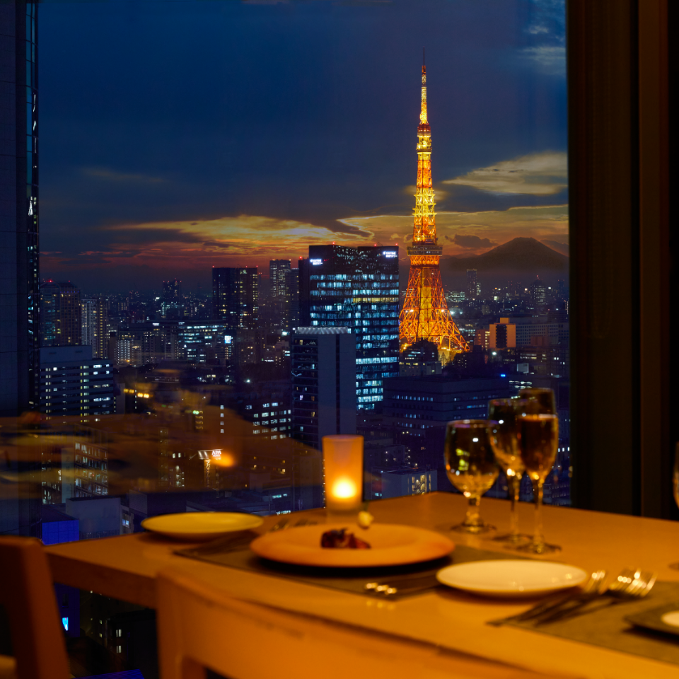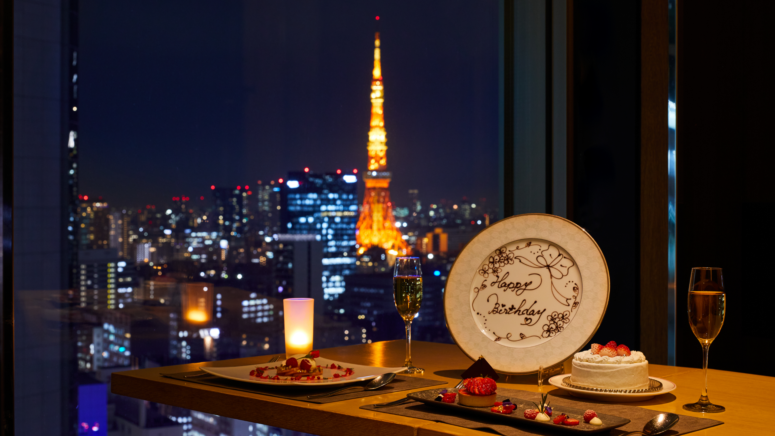 We offer afternoon Afternoon Tea, where you can enjoy the luxury Swiss tea brand "SIROCCO" served in Wedgwood tea utensils while taking in the view of Hamarikyu Gardens and Tokyo Tower from the high floors approximately 100 meters above ground, and evening high tea, where you can enjoy the glittering night view of Tokyo's waterfront area. Please choose the time of day to enjoy it.