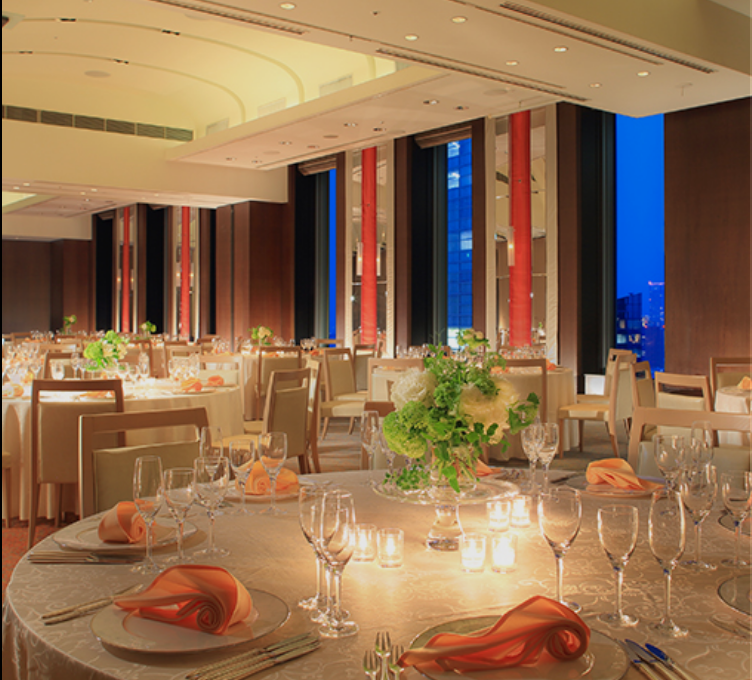 A party plan using the banquet hall "Shiosai," where you can enjoy the light streaming in through the large windows overlooking Hama-rikyu Gardens during the day, and the night view from a high floor approximately 100 meters above ground in the evening.