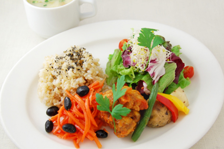 Without using meat, eggs, dairy products, white sugar, chemical seasonings, you can enjoy dishes and sweets using domestic organic brown rice, vegetables, beans, and seaweed in a cafe style.