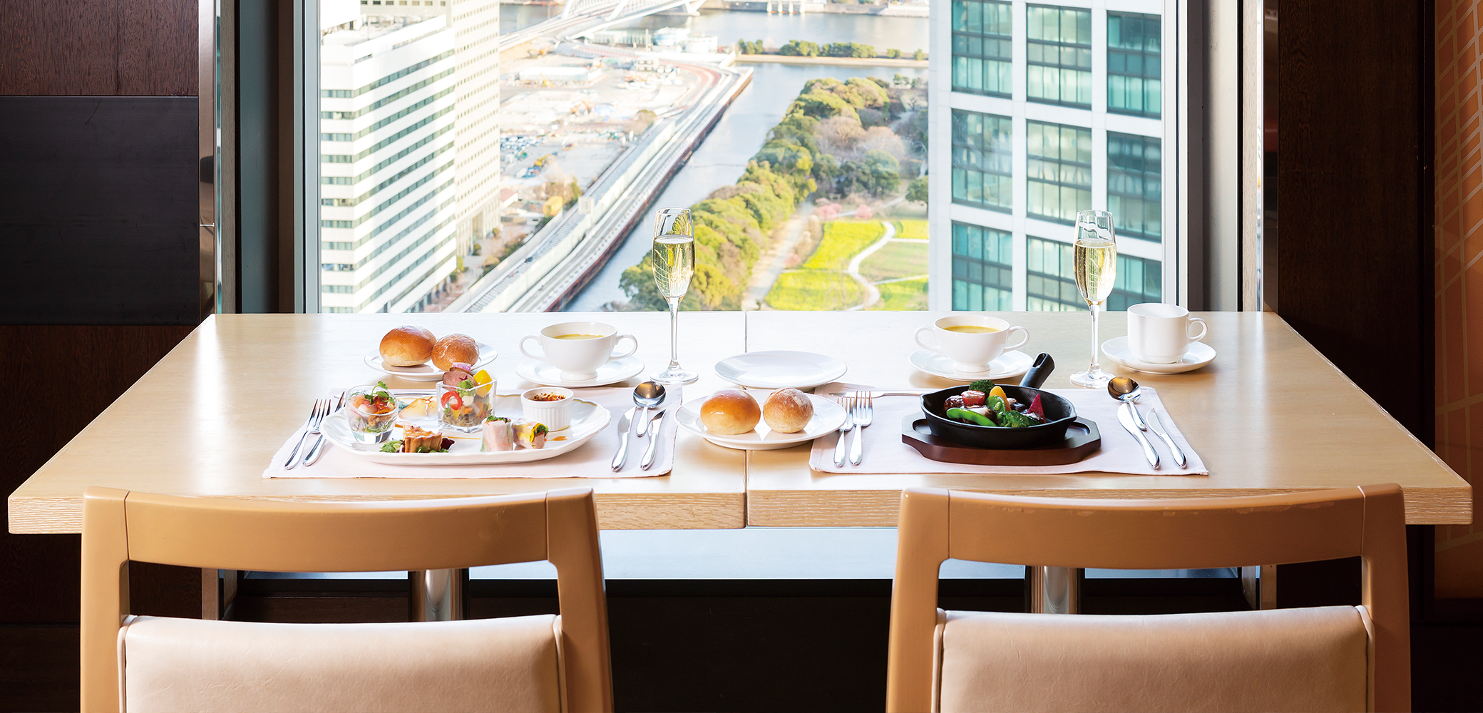 All-Day Dining offers large windows overlooking the lush greenery of Hamarikyu Gardens and the dazzling light of Tokyo Tower. Our open kitchen allows you to watch our passionate chefs at work.