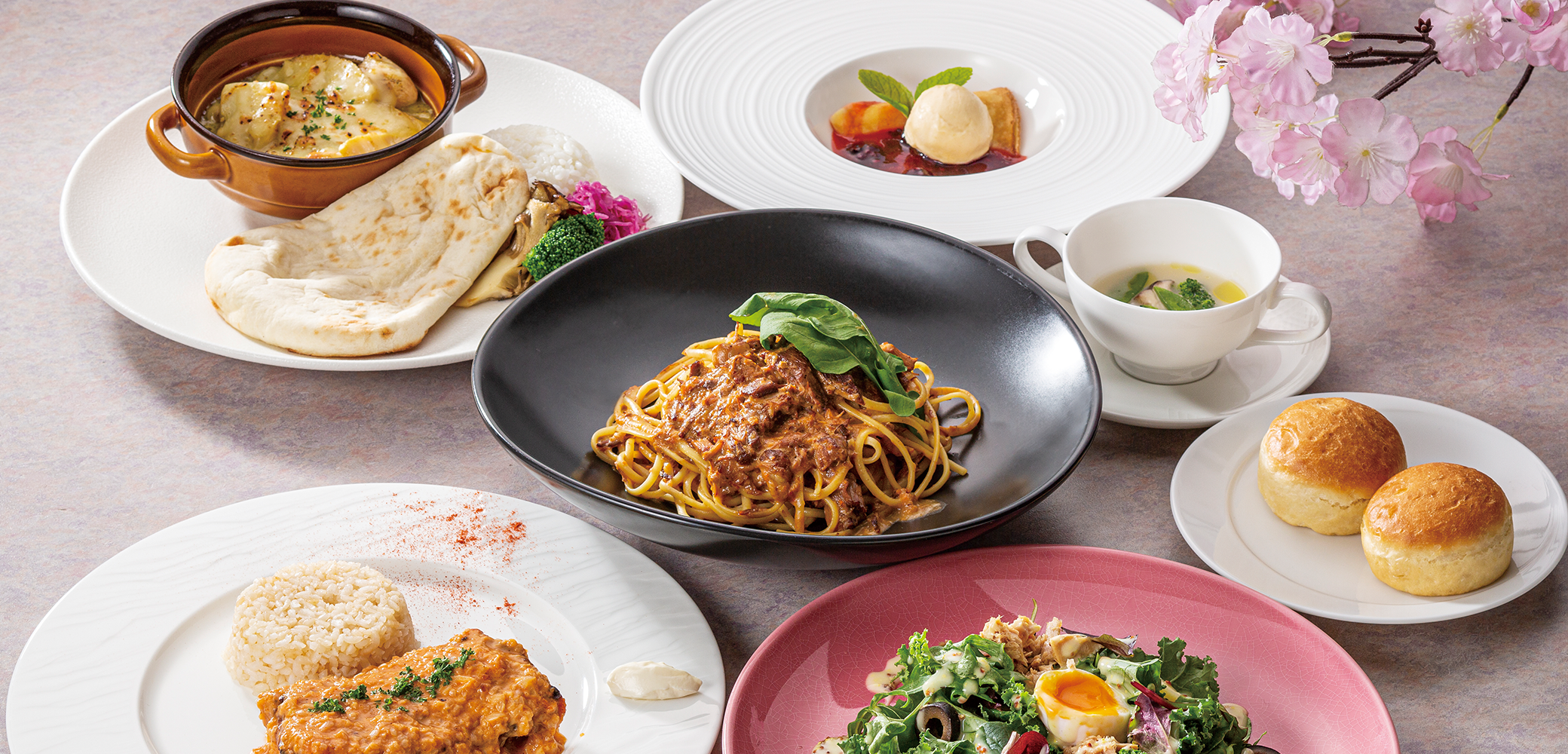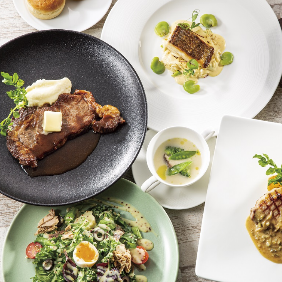 Harmony Lunch JPY 3,500 Salad, soup, choice of main dish, dessert, Coffee or Black Tea