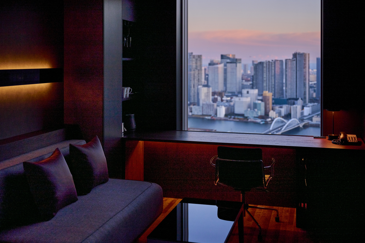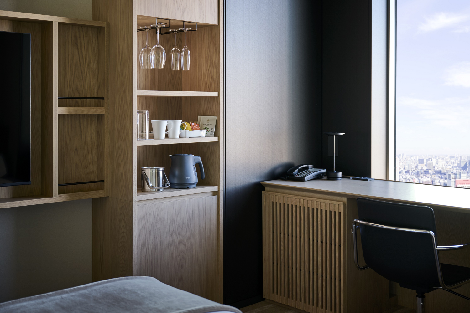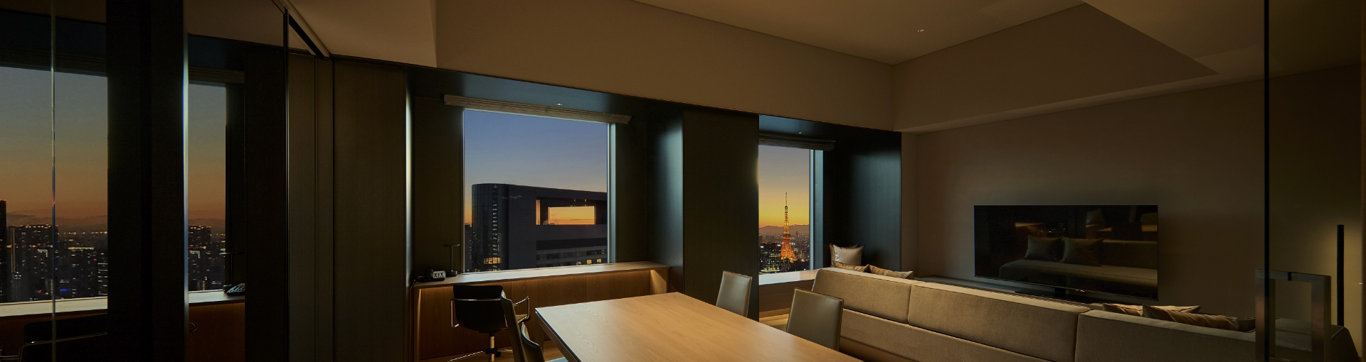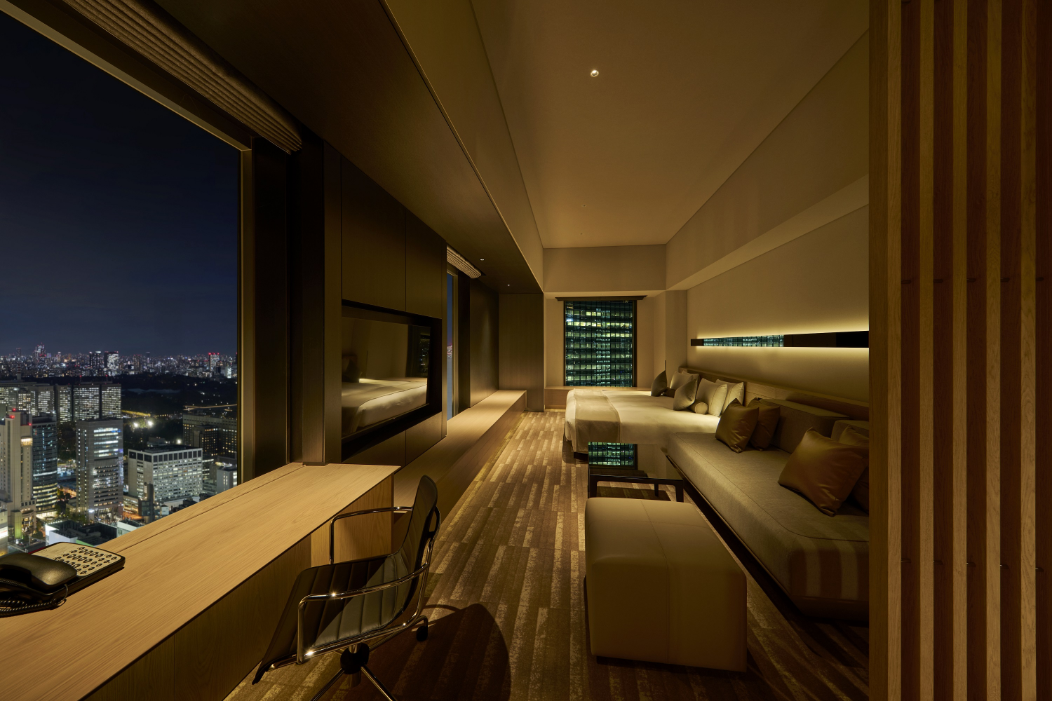 The guest rooms capture the view of the glittering skyscrapers at night, and the design incorporates the image of ending the day amidst that night view.