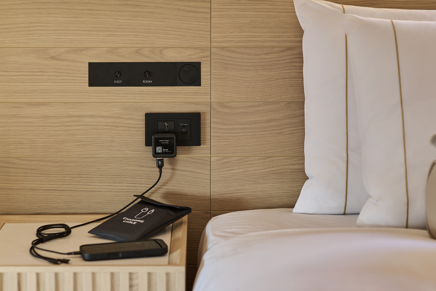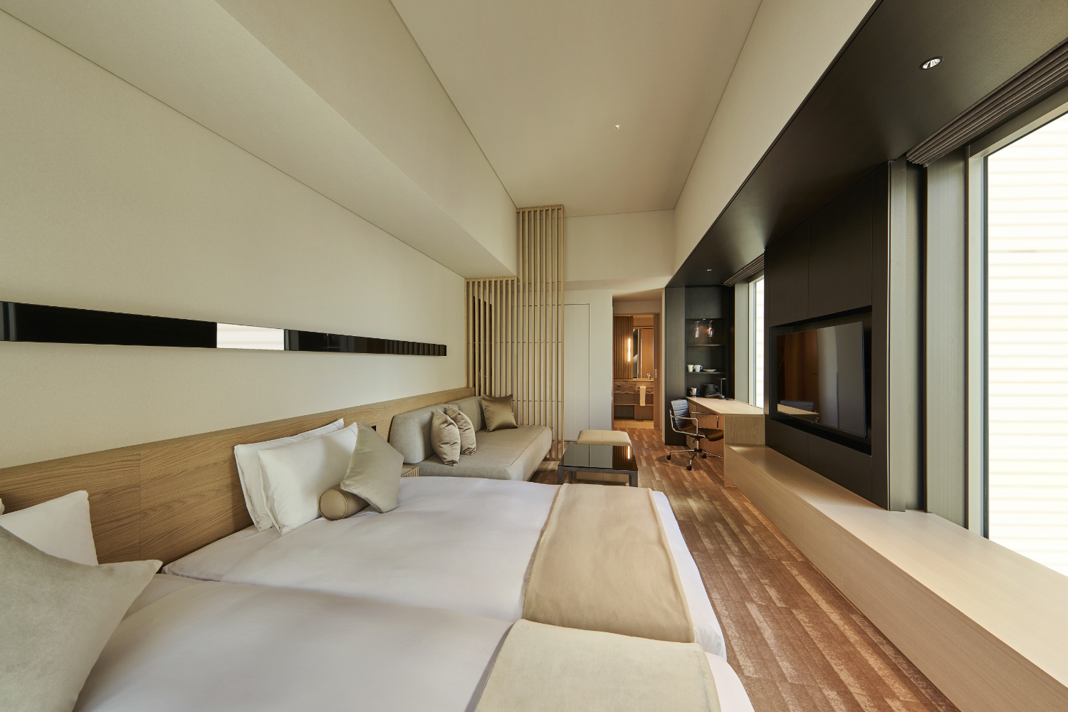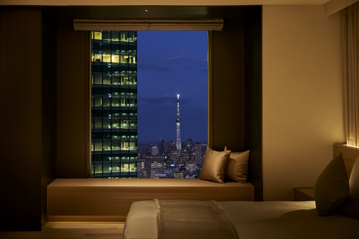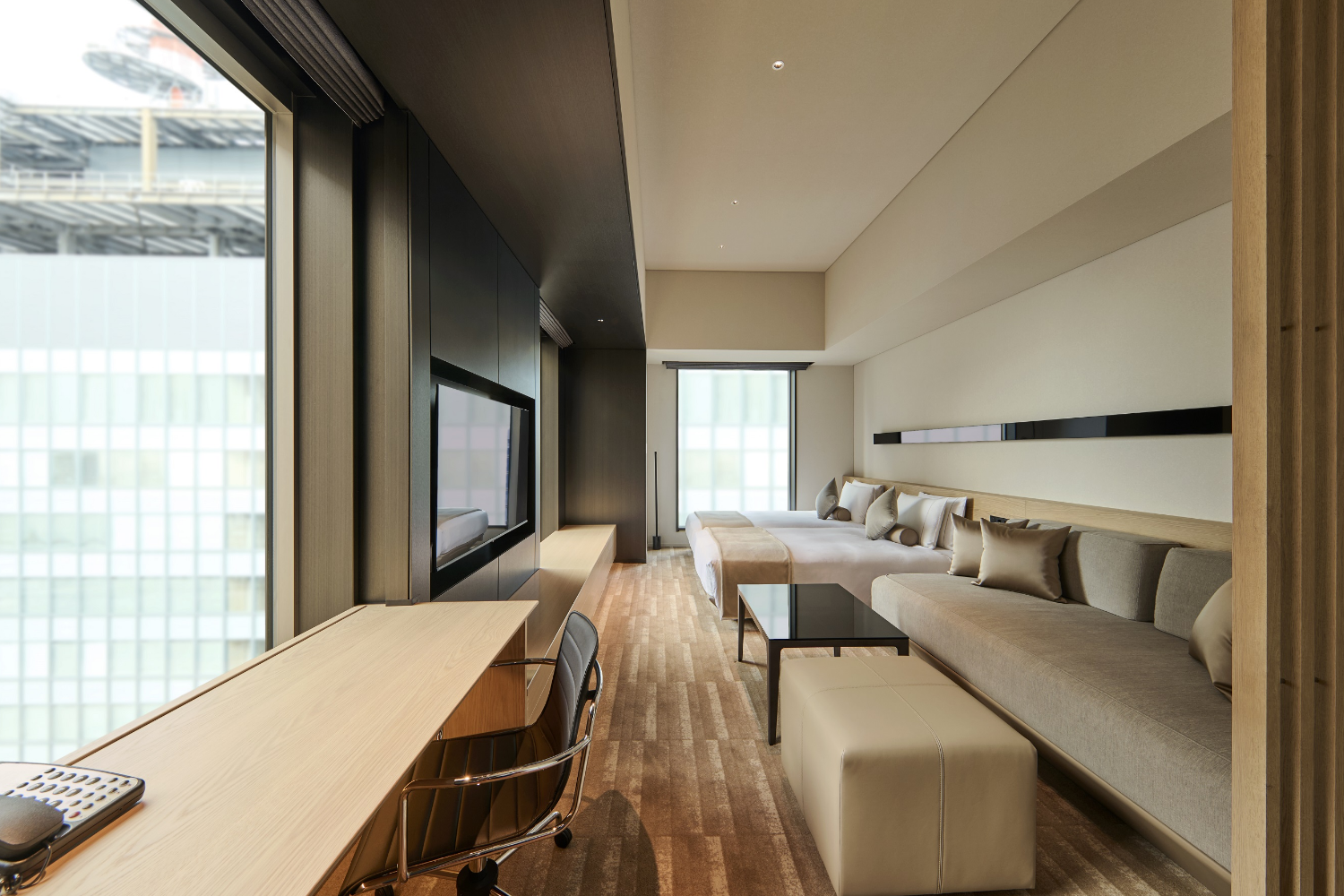 The guest rooms capture the view of the glittering skyscrapers at night, and the design incorporates the image of ending the day amidst that night view.