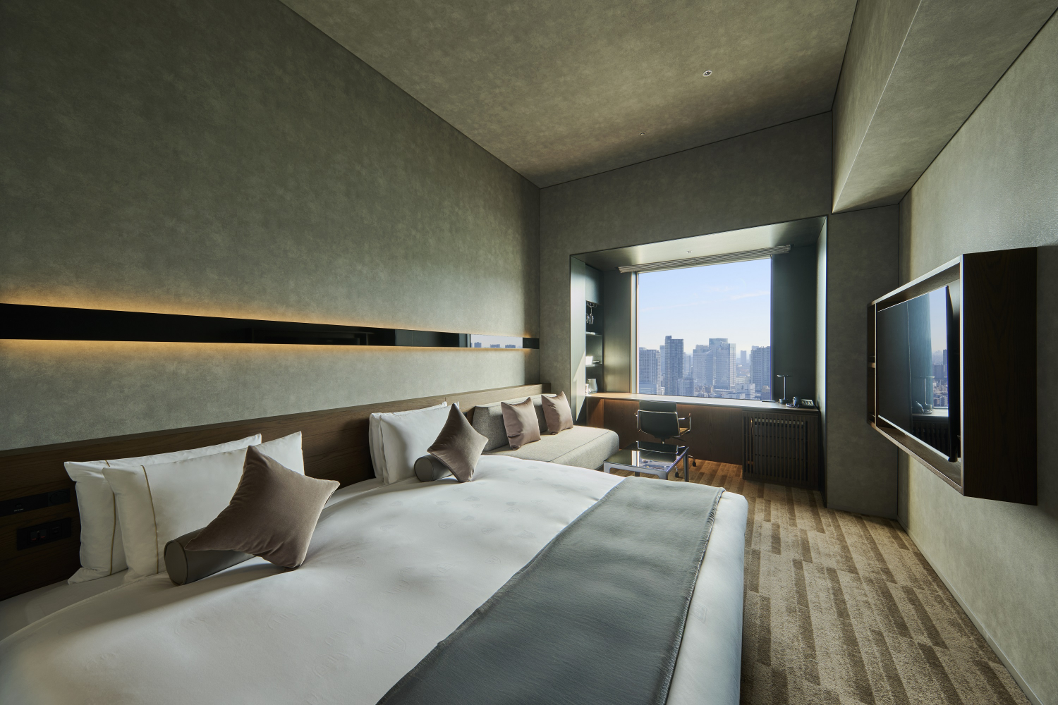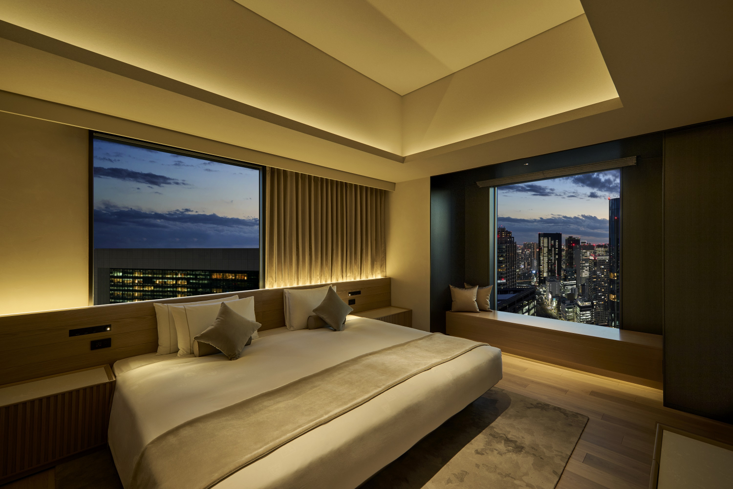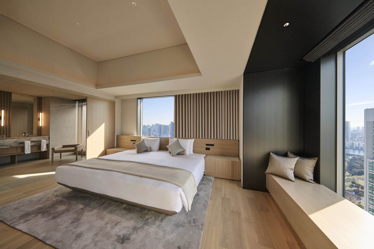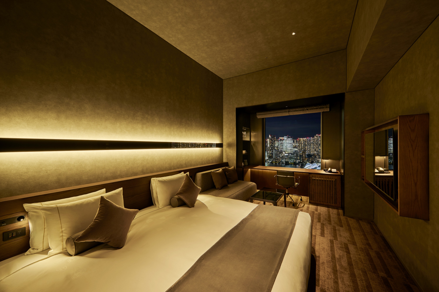 浜離宮恩賜庭園や東京ウォーターフロントの摩天楼を望む客室。