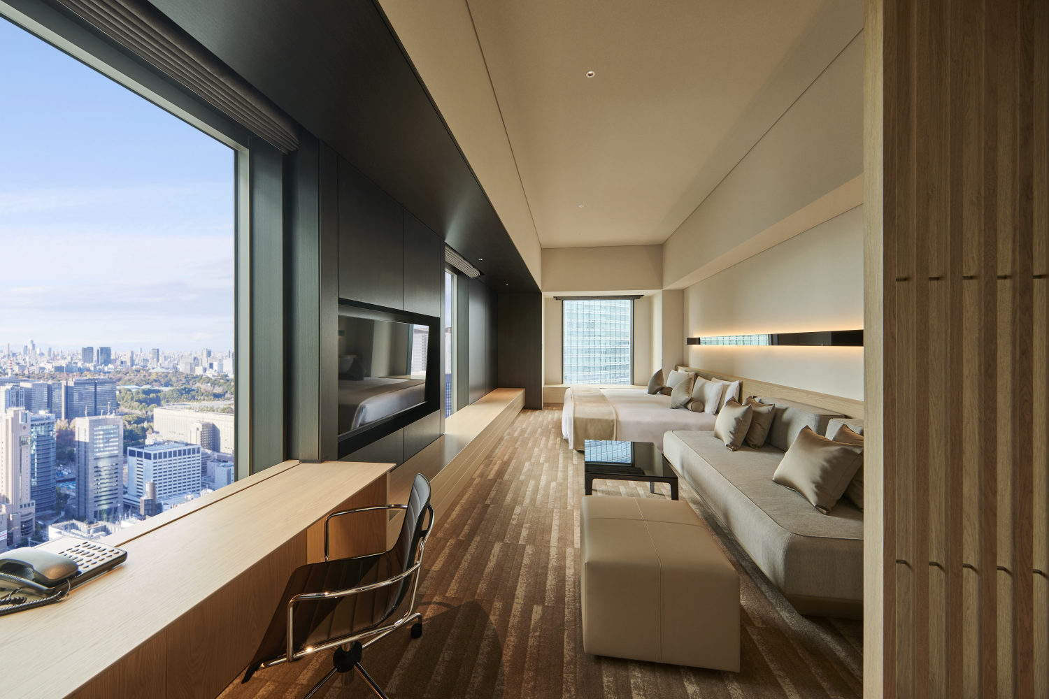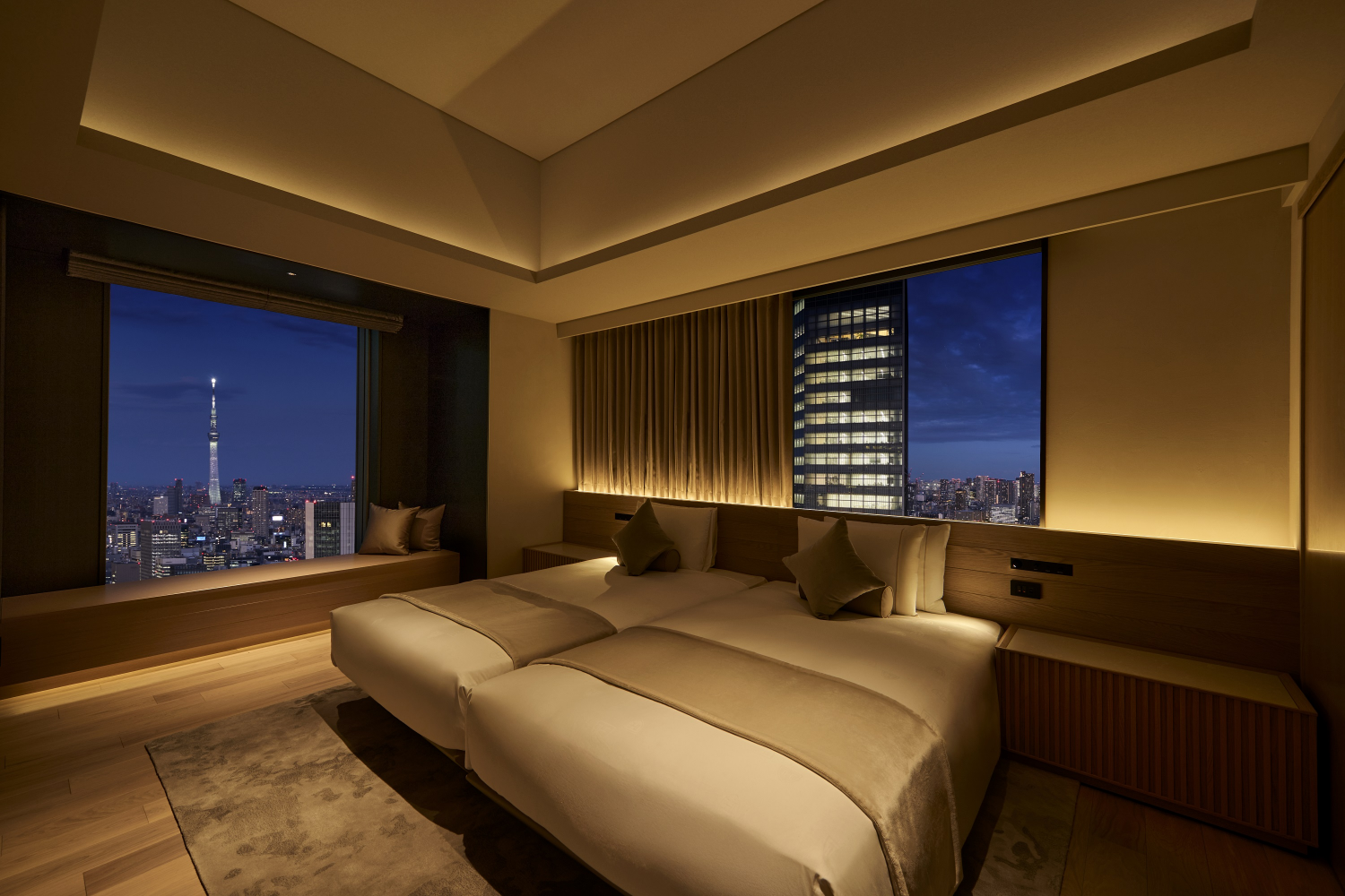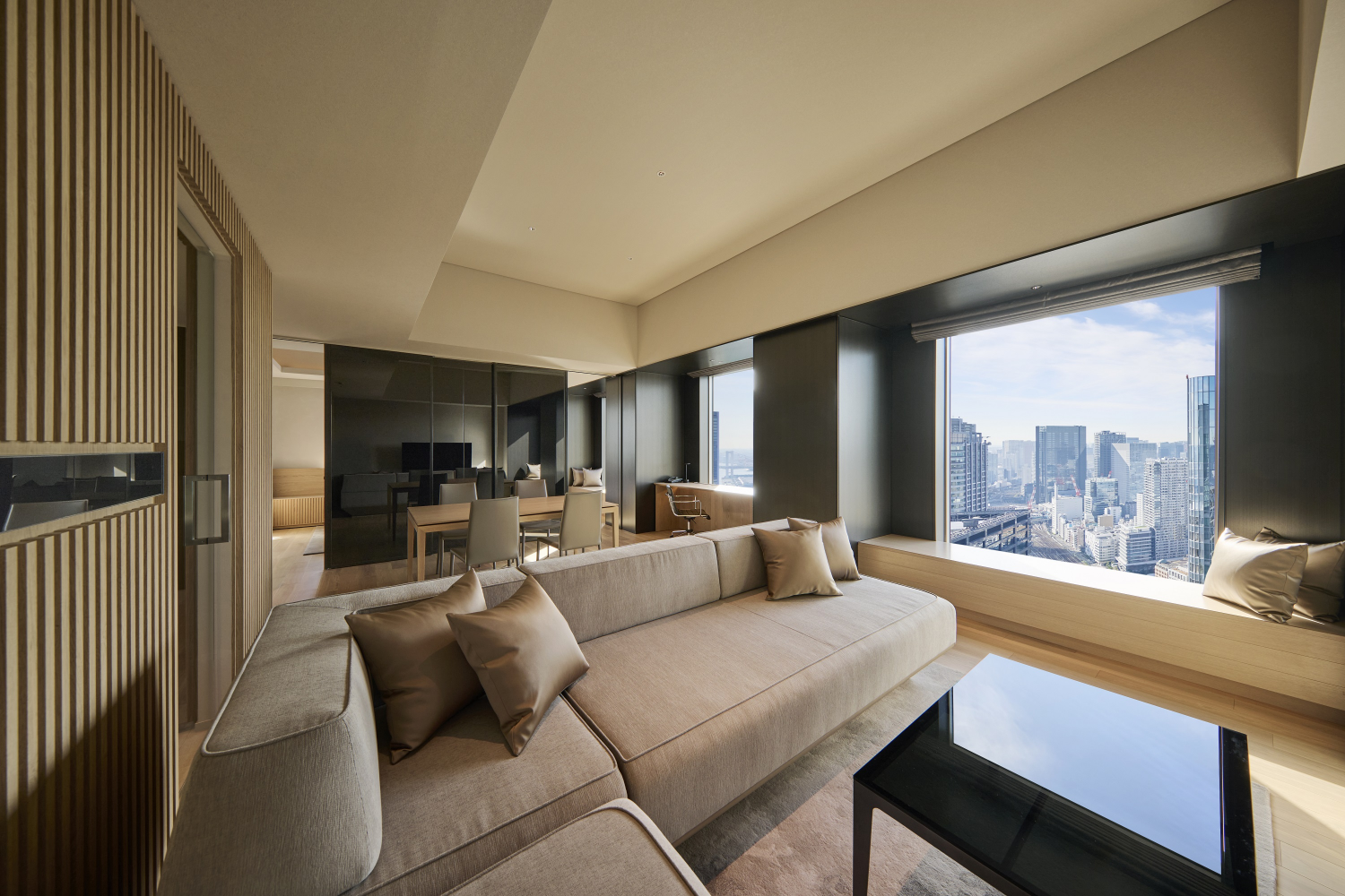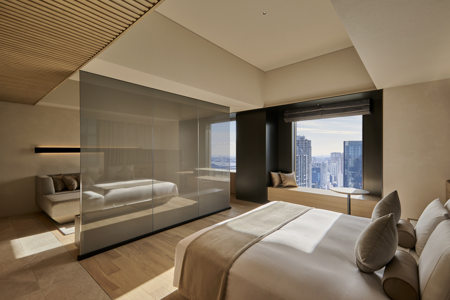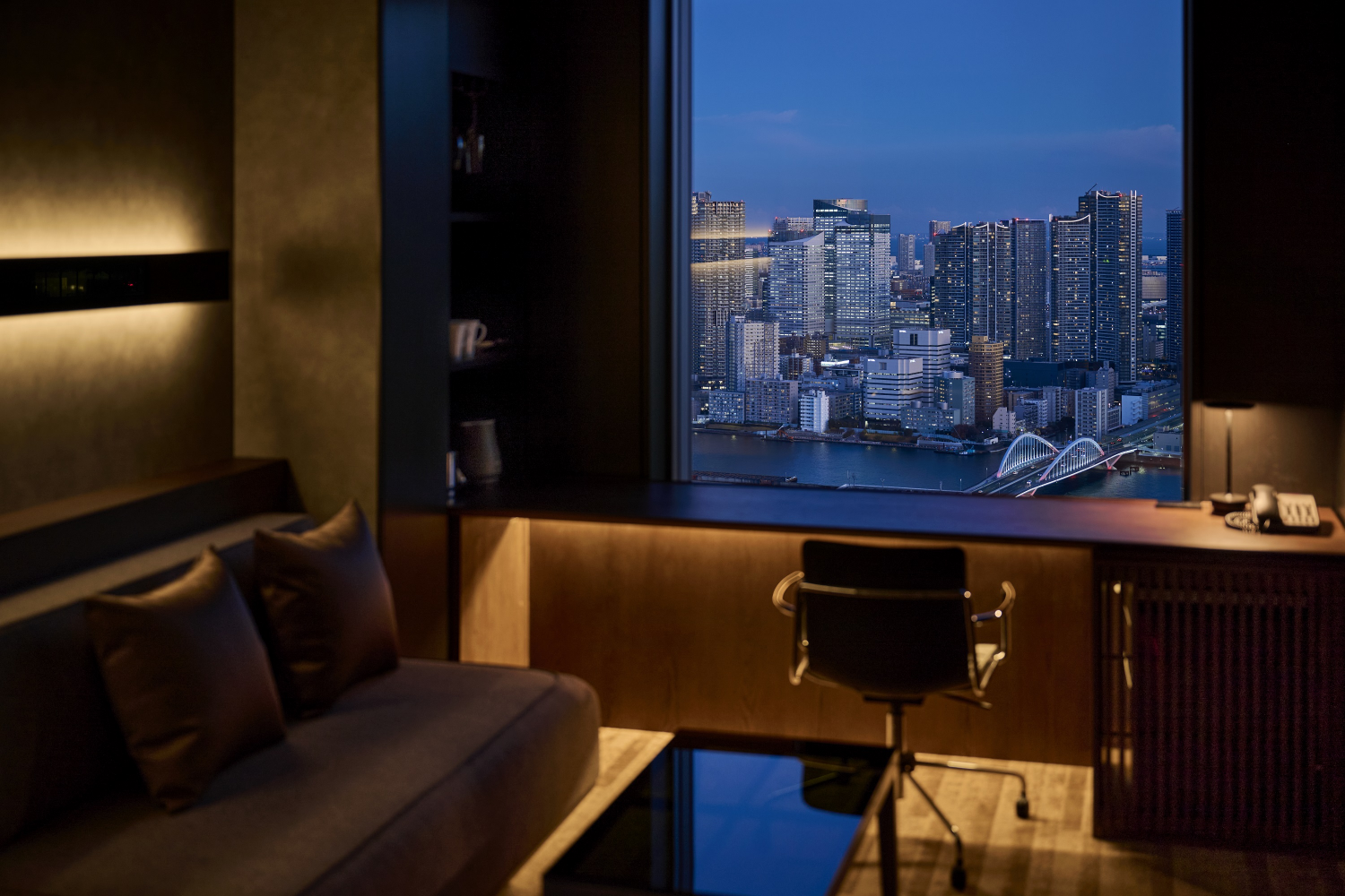 浜離宮恩賜庭園や東京ウォーターフロントの摩天楼を望む客室。