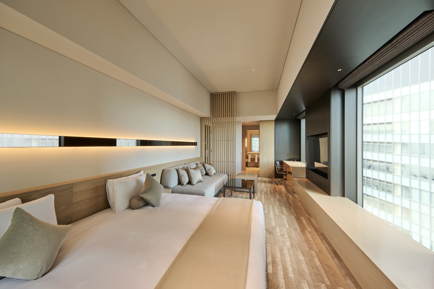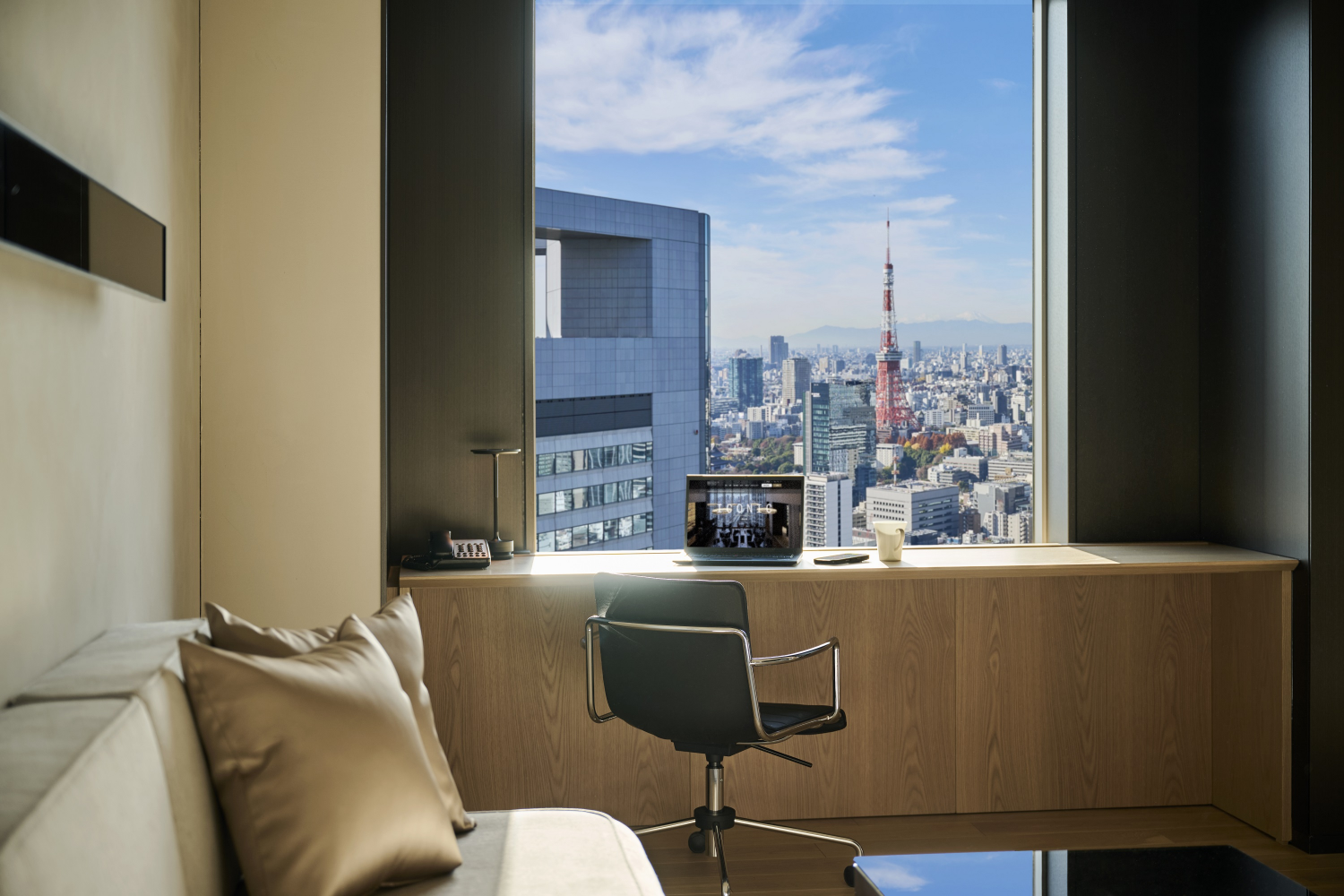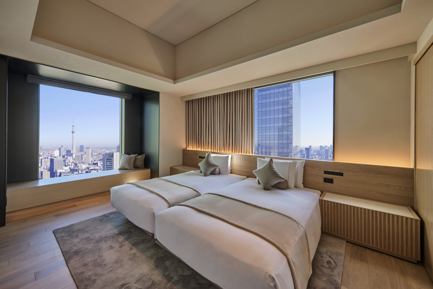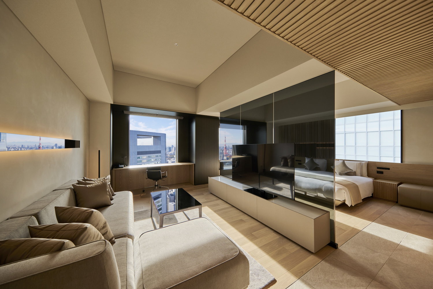 浜離宮恩賜庭園や東京ウォーターフロントの摩天楼を望む客室。