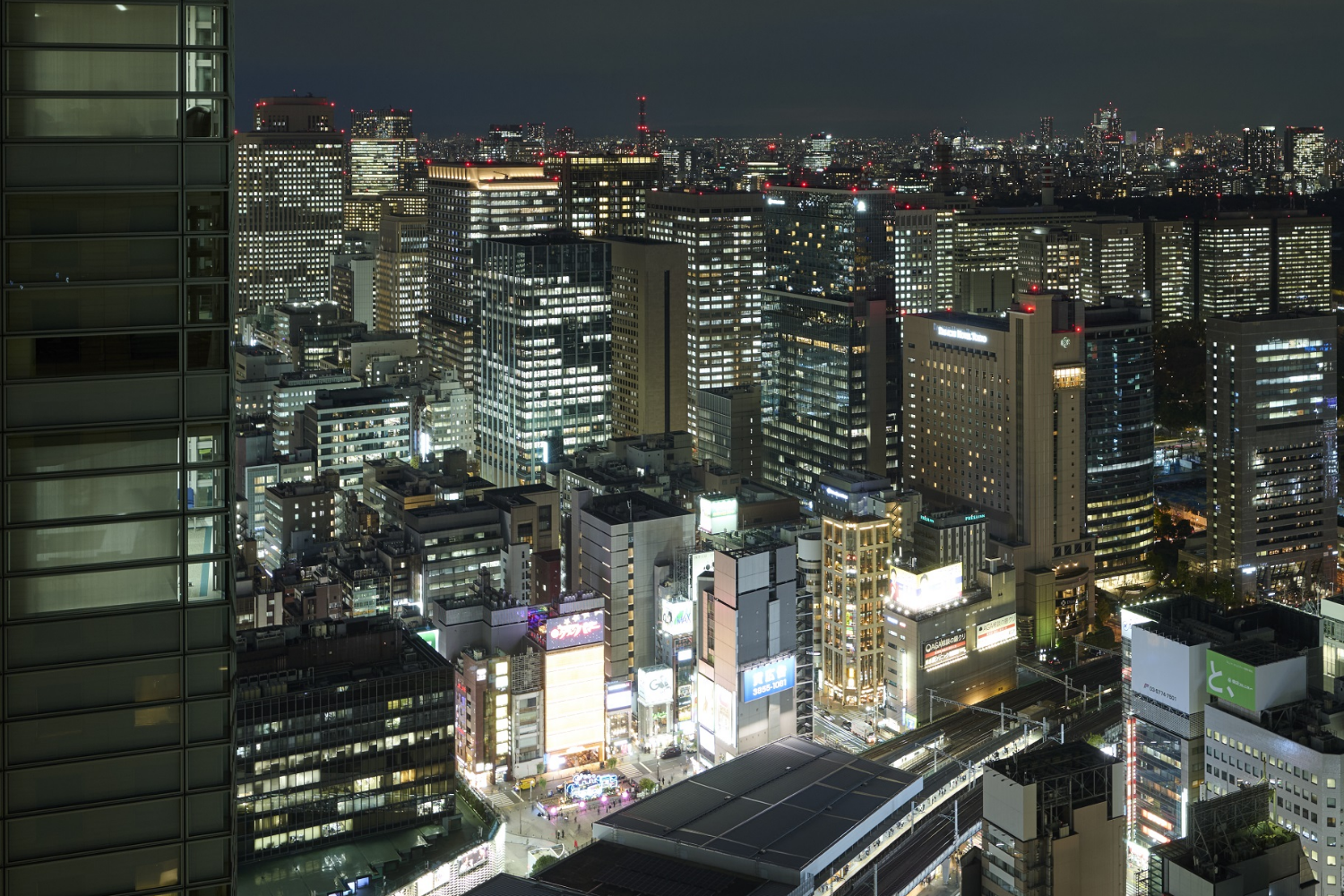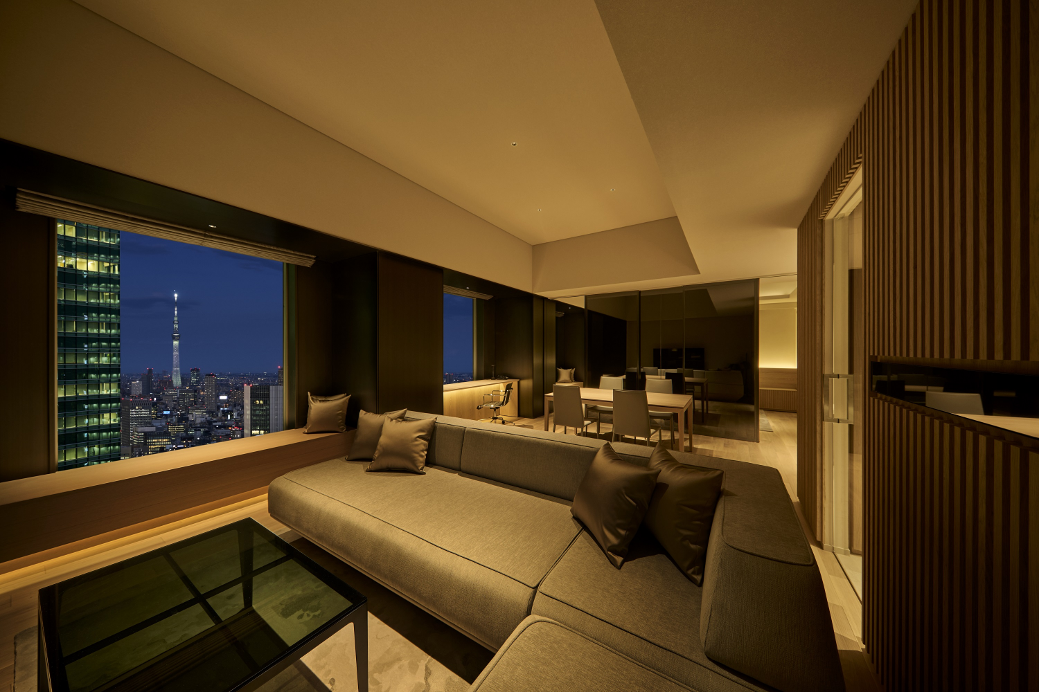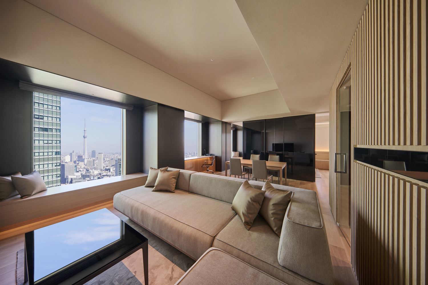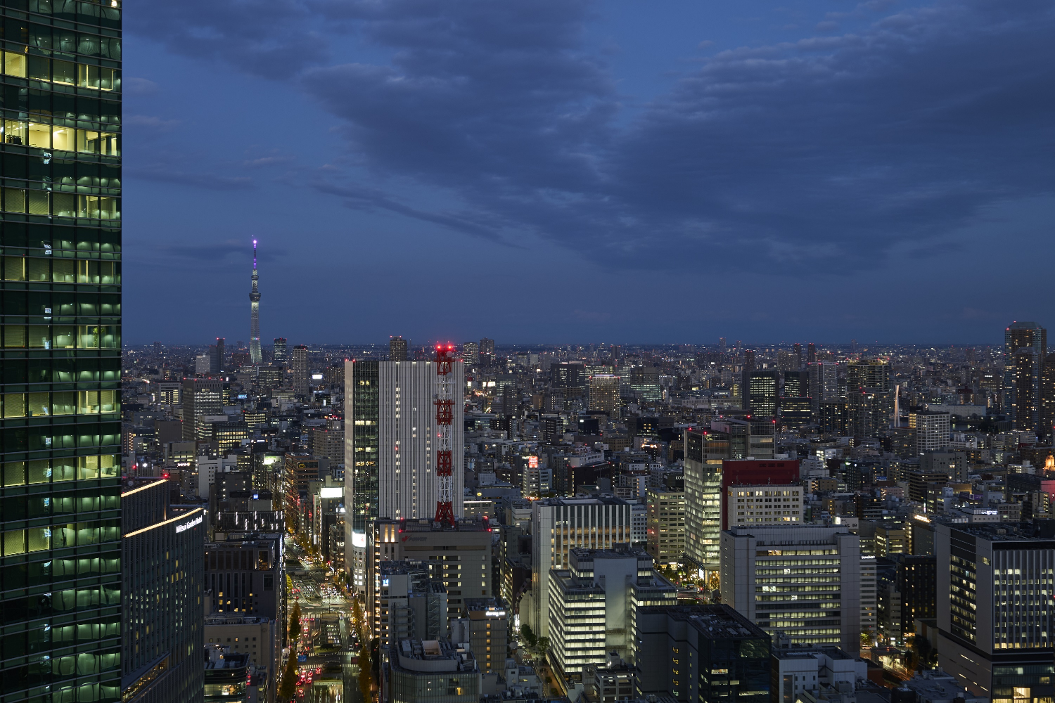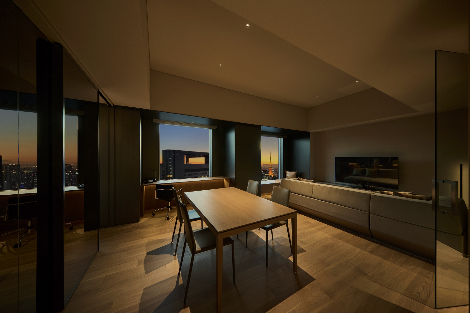 浜離宮恩賜庭園や東京ウォーターフロントの摩天楼を望む客室。