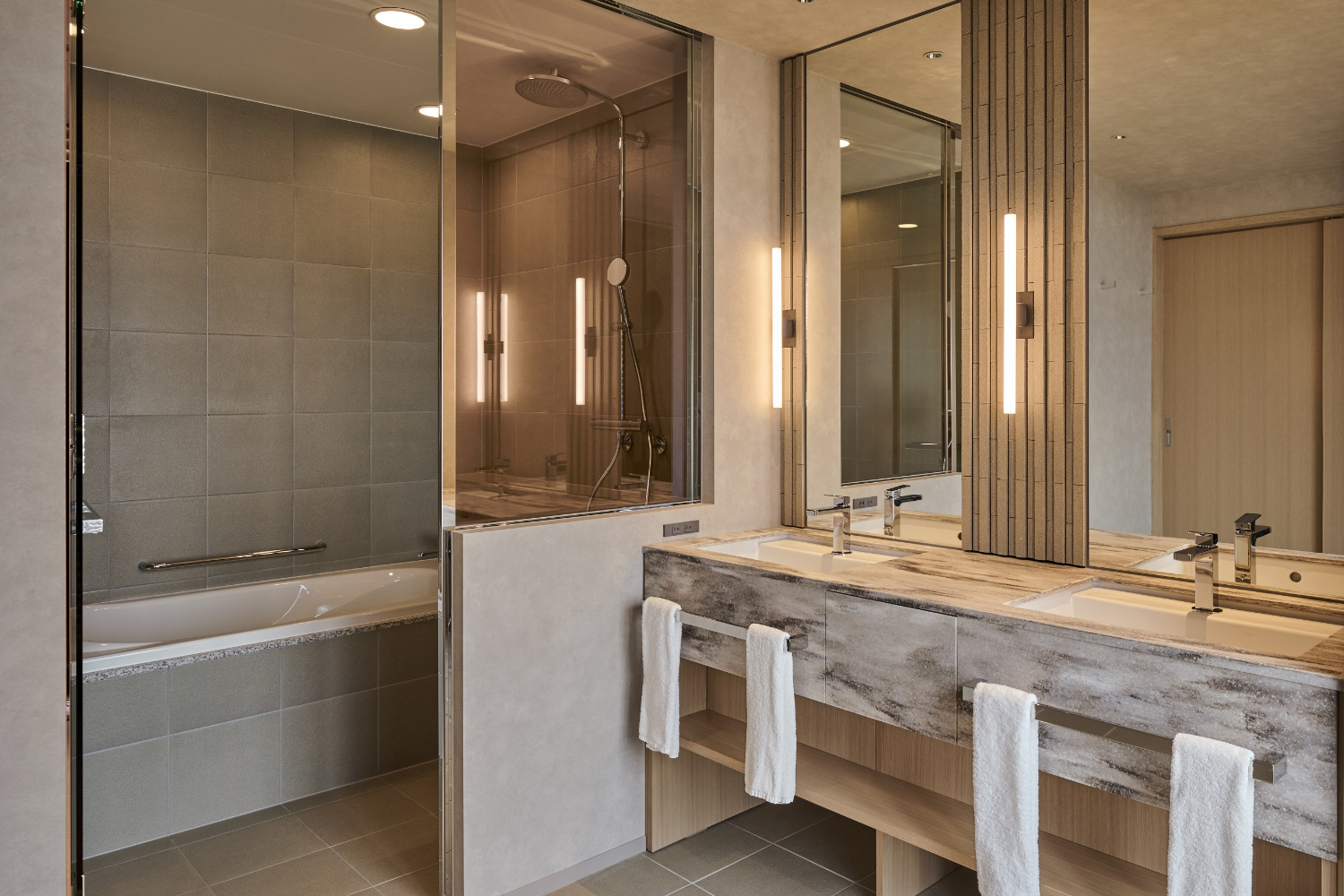 シャワーブースがあり、打たせ湯を楽しみながら夜景を眺める贅沢を味わっていただけます。