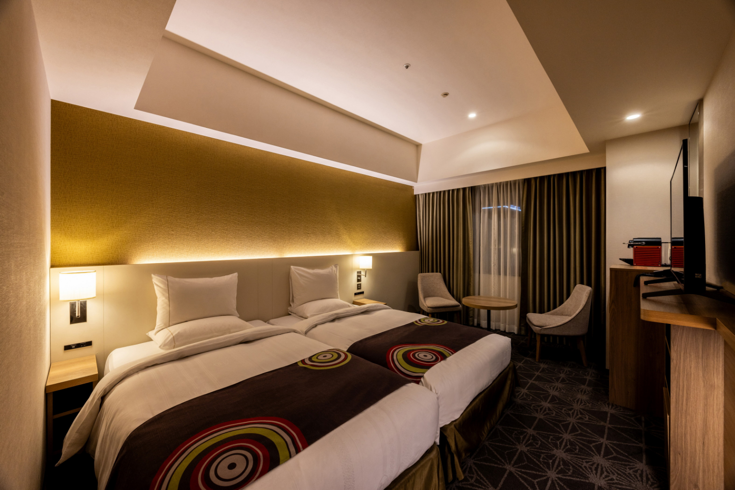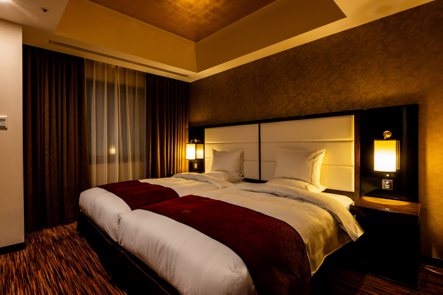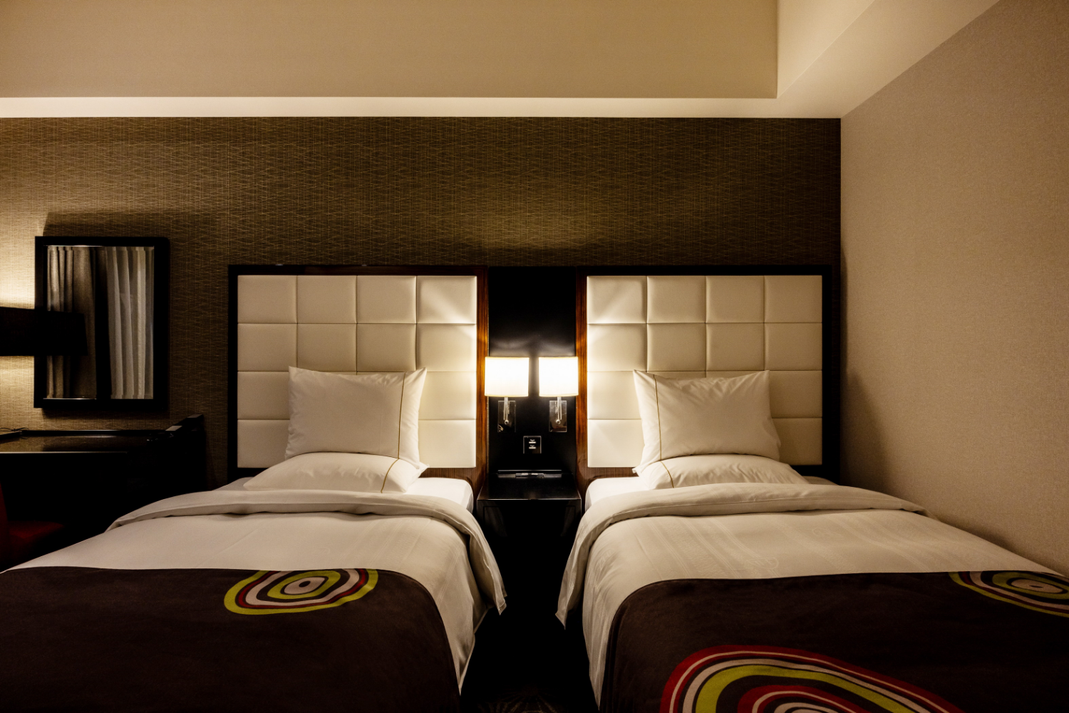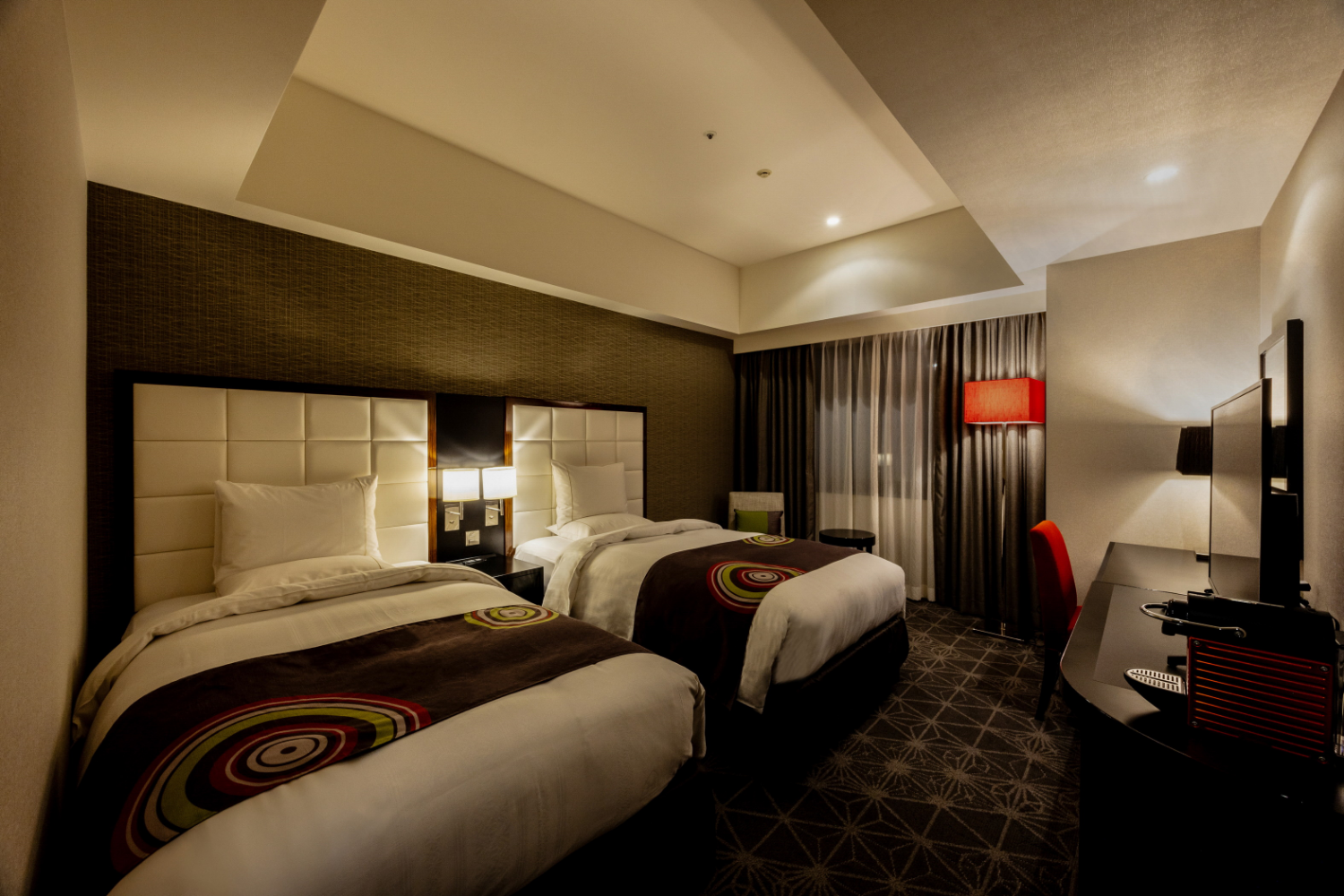 Premium floor on the Top 8F. A Hollywood Twin type room with two beds placed side by side.