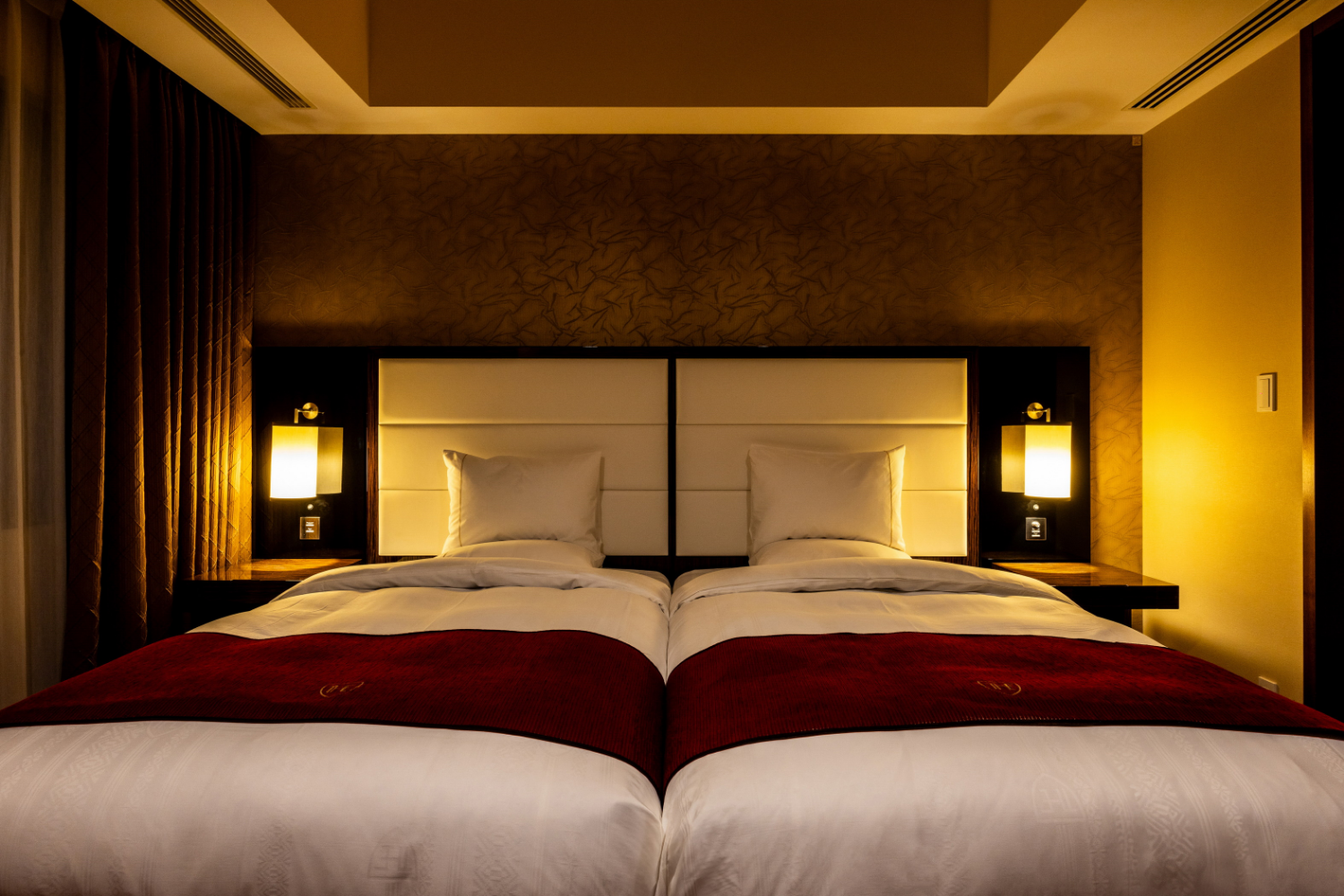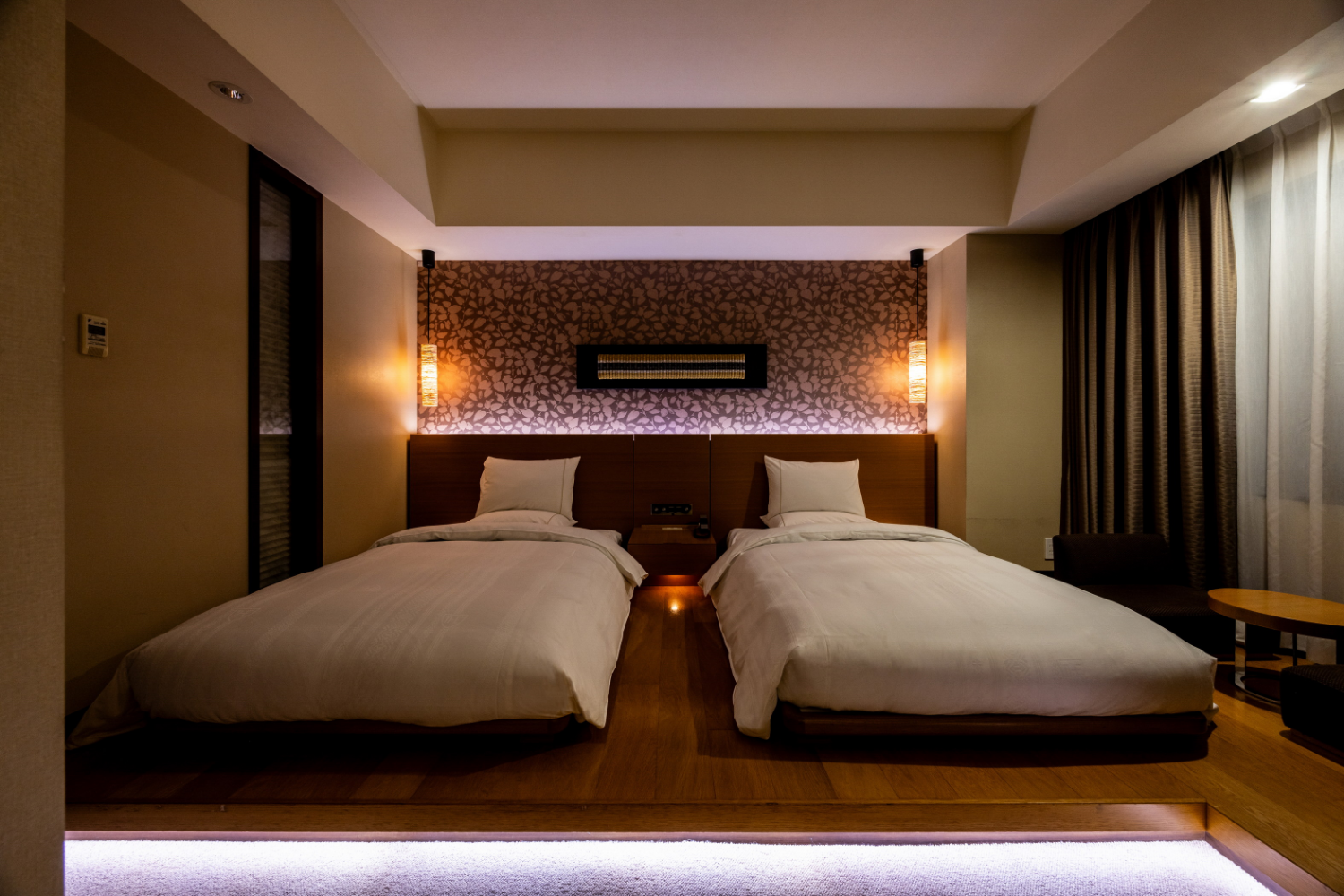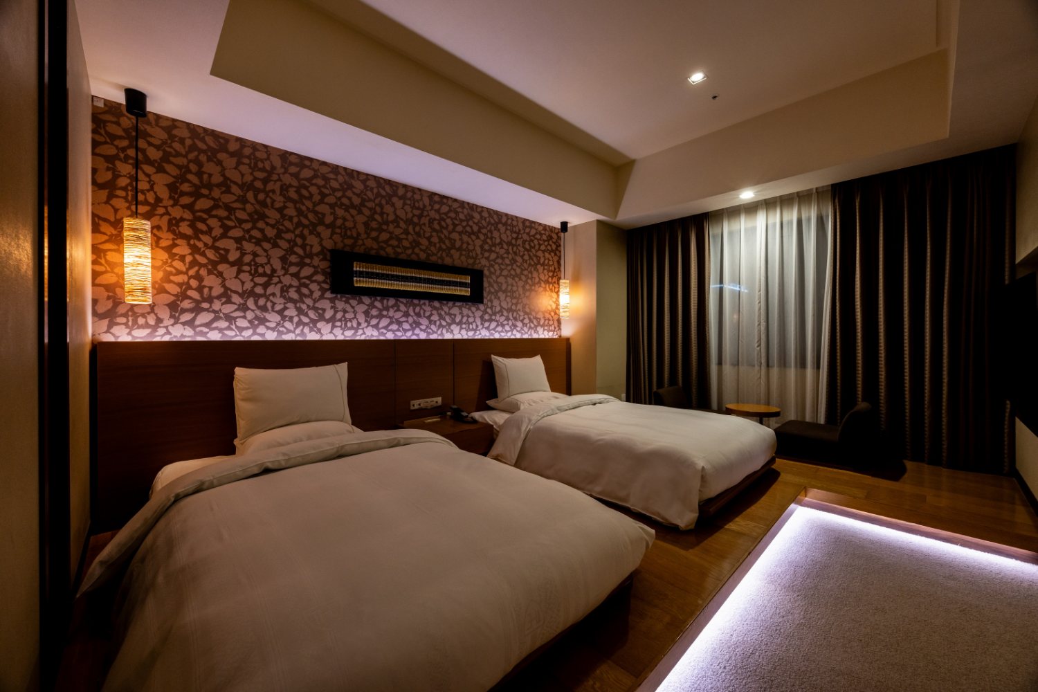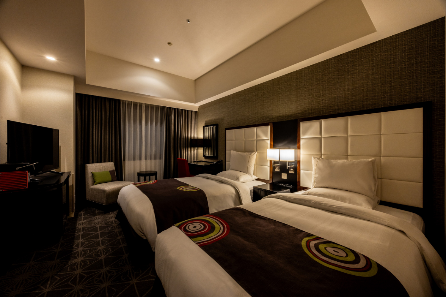 Premium floor on the Top 8F. A Hollywood Twin type room with two beds placed side by side.