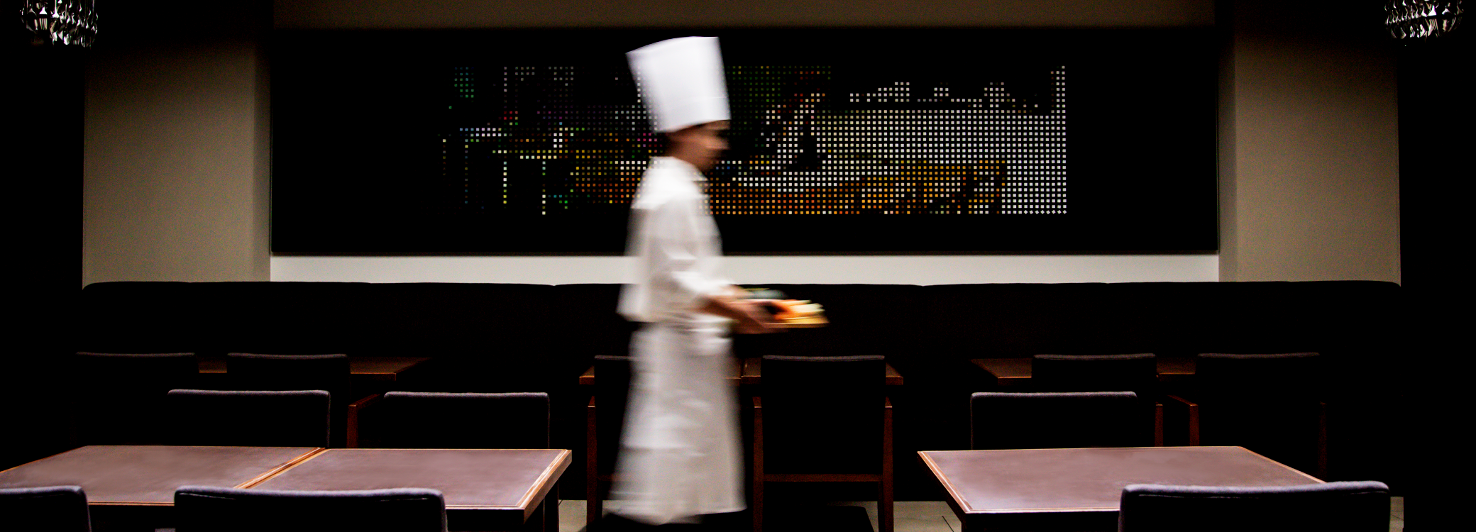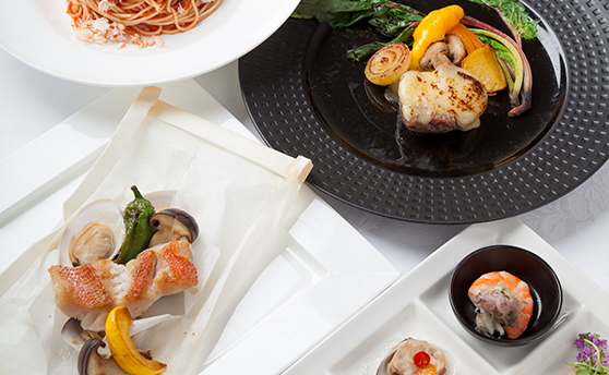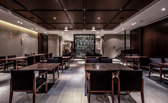 The B1F Restaurant "Monsieur ITOH" has a modern and calm atmosphere with an interior and wine cellar made with the underground storage in mind.
