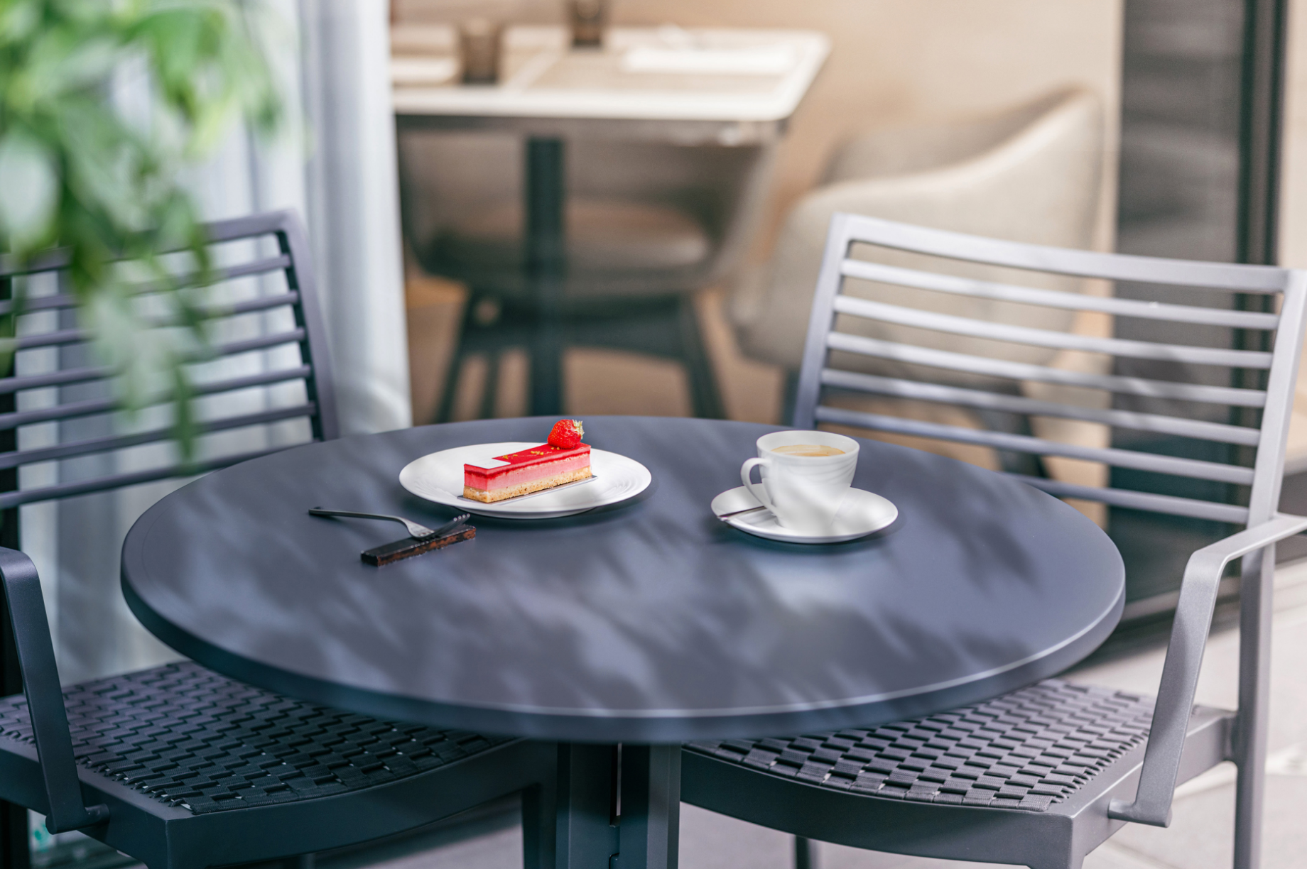 カフェは華やかなコンテンポラリースイーツとともに、ゆとりある時間をお過ごしください。