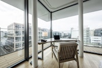 二面に配した大きな窓とバルコニーからは、京都の街並みはもちろん、街の音や空気感までも感じられる、開放感あふれる空間が広がります。