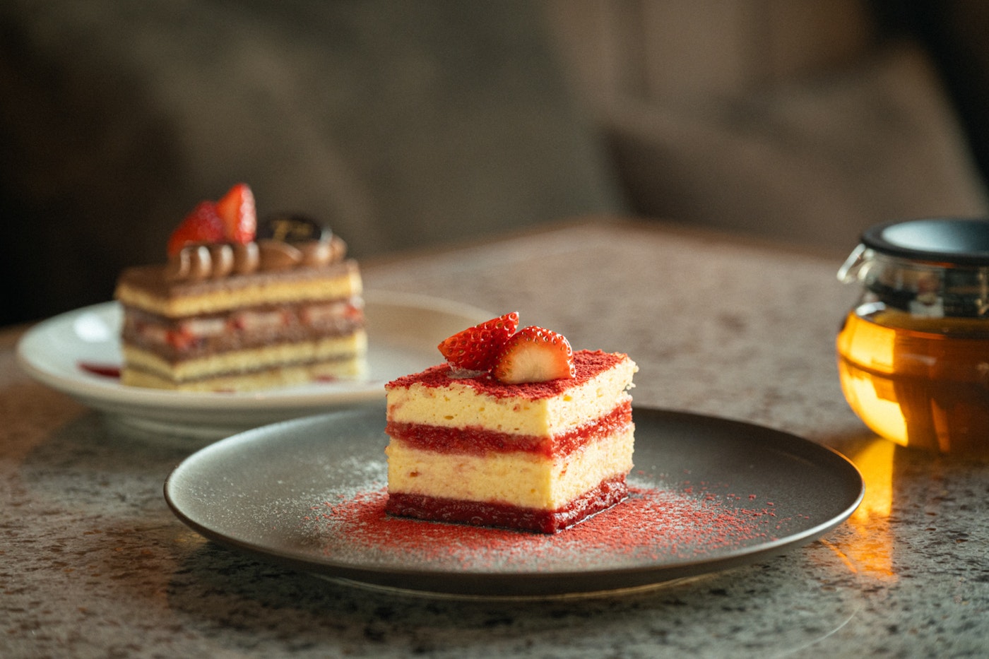 いちごシロップをたっぷりしみこませた真っ赤ないちごをイメージしたティラミスや、チョコレートを加えた生クリームをたっぷり絞ったショートケーキなど、甘く濃厚なデザートタイムをお楽しみいただけます。