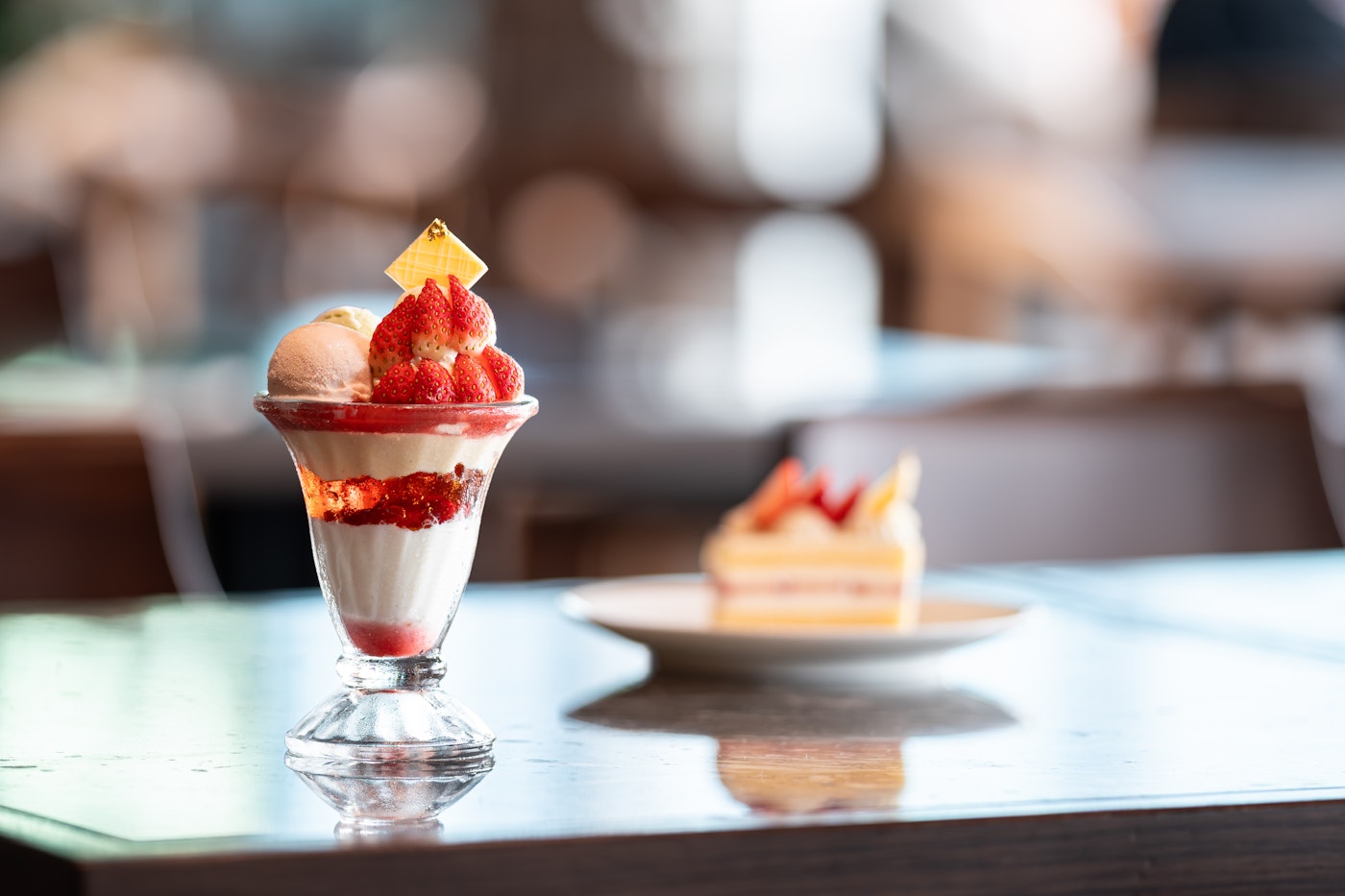 仕上げにいちごとピスタチオのアイスをのせた、どこから食べてもいちごを感じられる至福の一品をぜひお楽しみください。