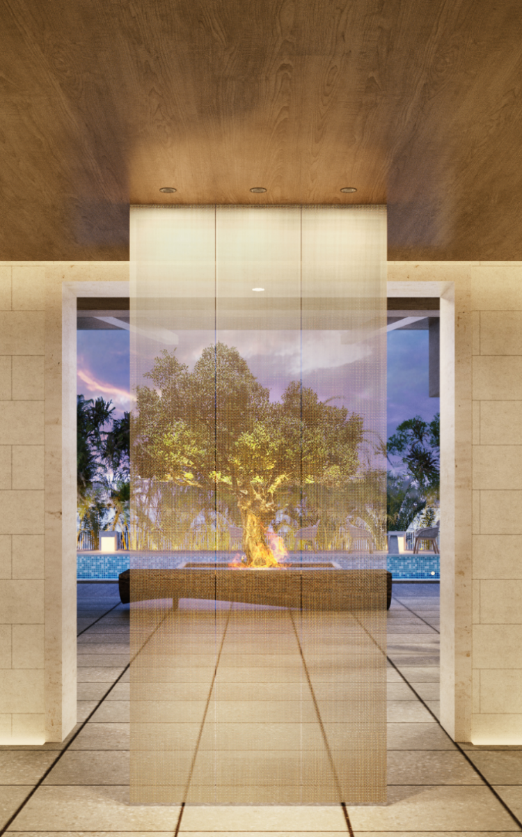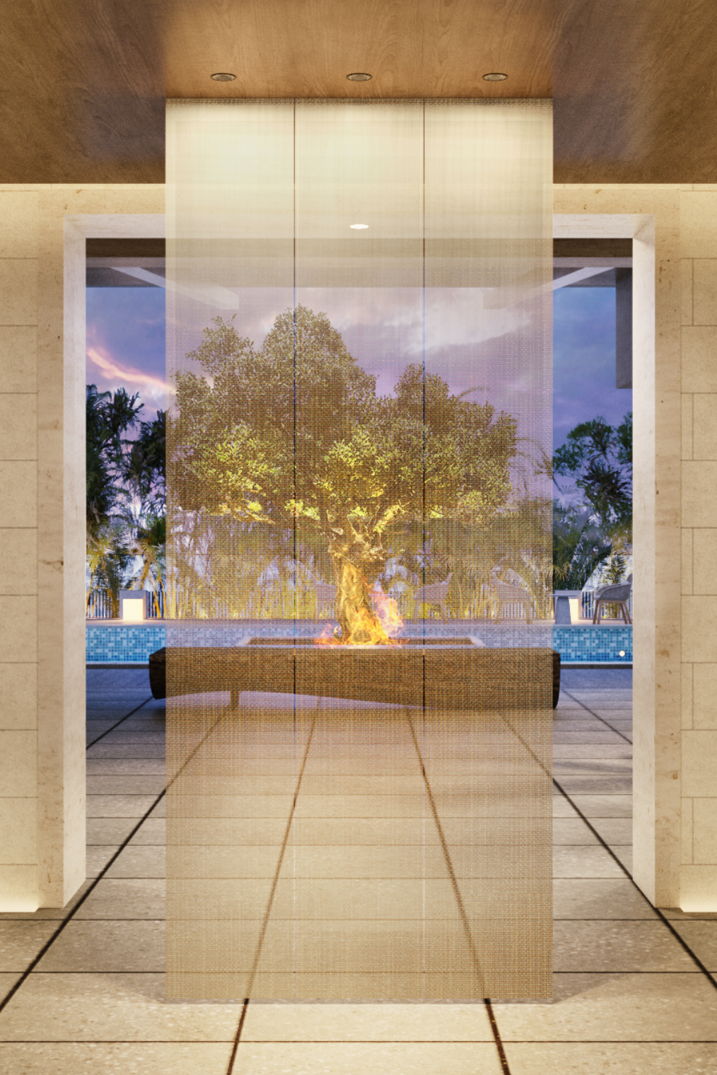 芭蕉布のスクリーンの先にはガジュマルが穏やかに佇み、