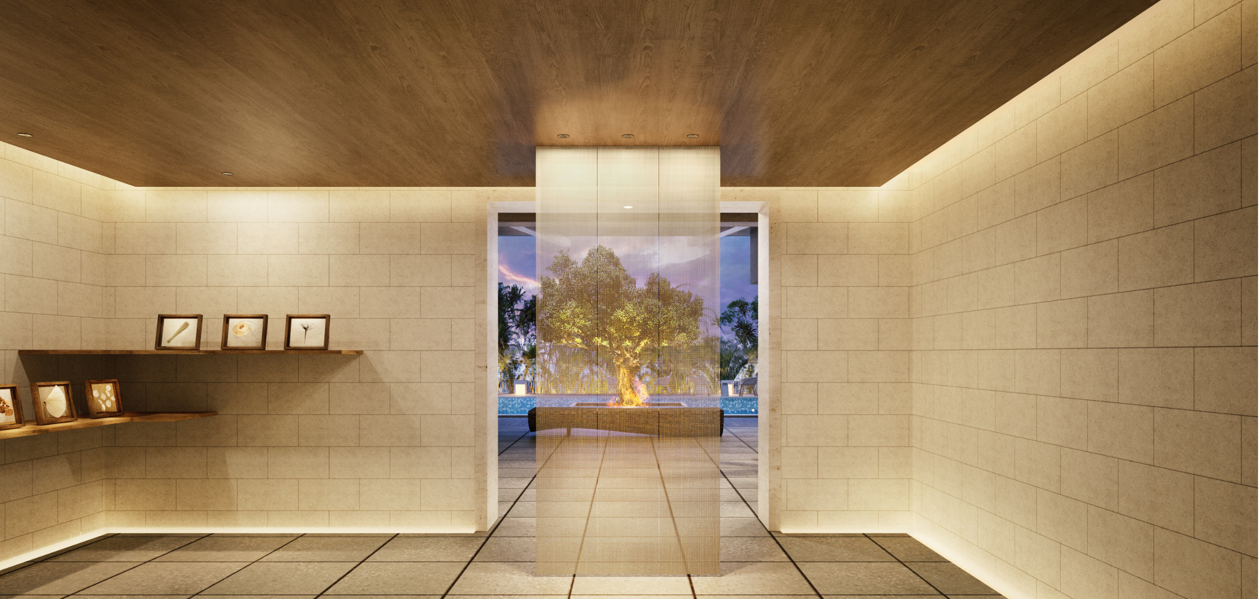 珊瑚の洞窟をイメージした、静かで落ち着きのある隠れ家のような空間。