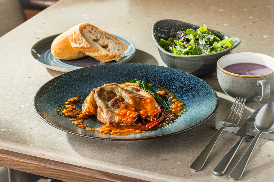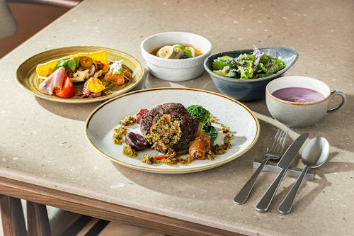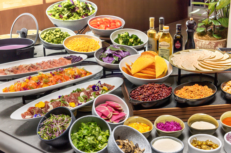 沖縄県産の食材を多く取り入れ、地中海料理をメインとしたアレンジでにぎわいの場にふさわしいメニューをご提供いたします。