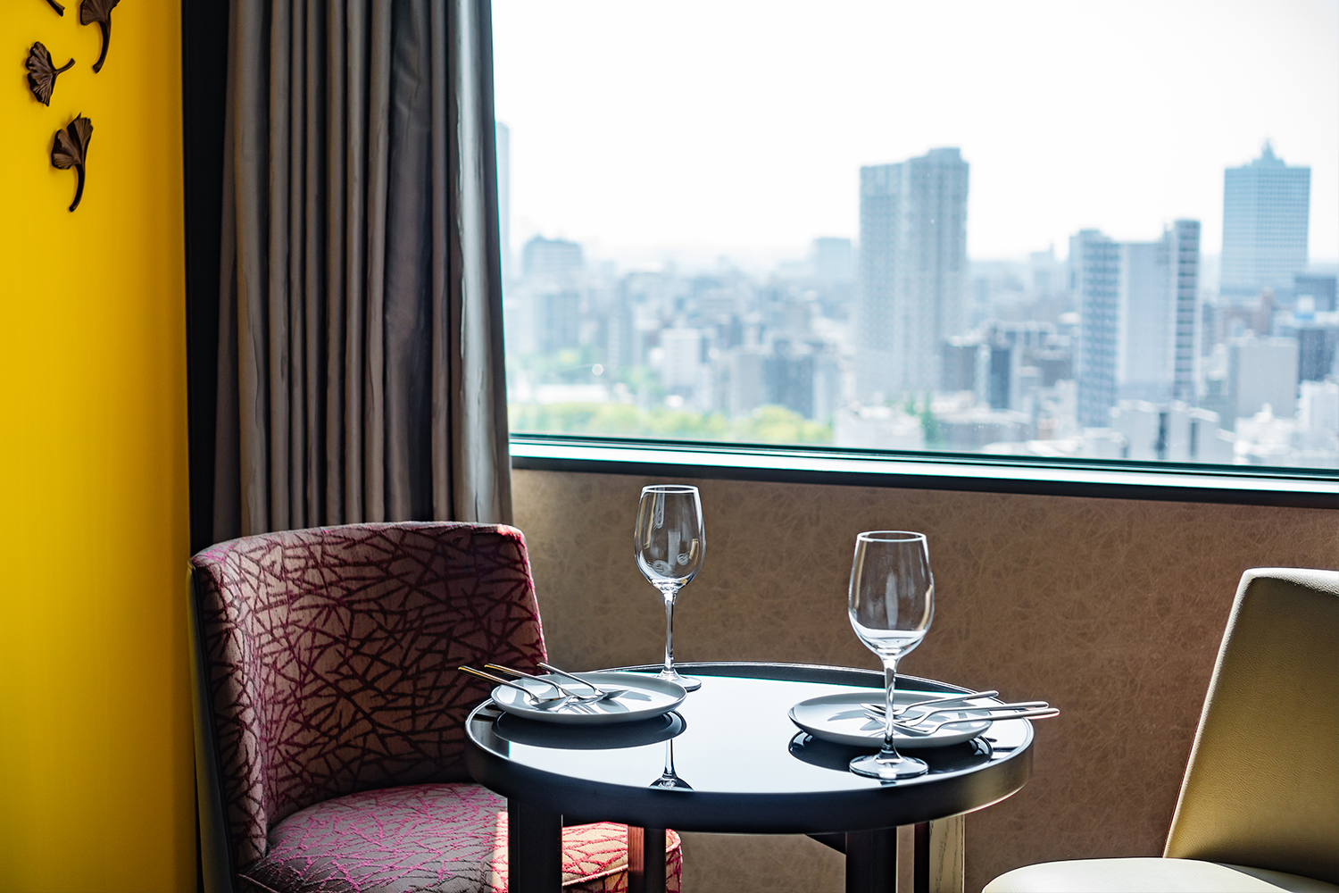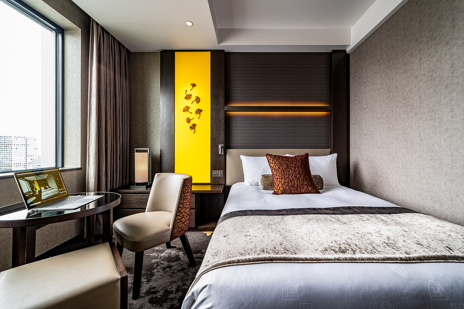 ホテルに面した御堂筋の象徴である、イチョウの黄色をアクセントカラーにした落ち着いたデザイン。
