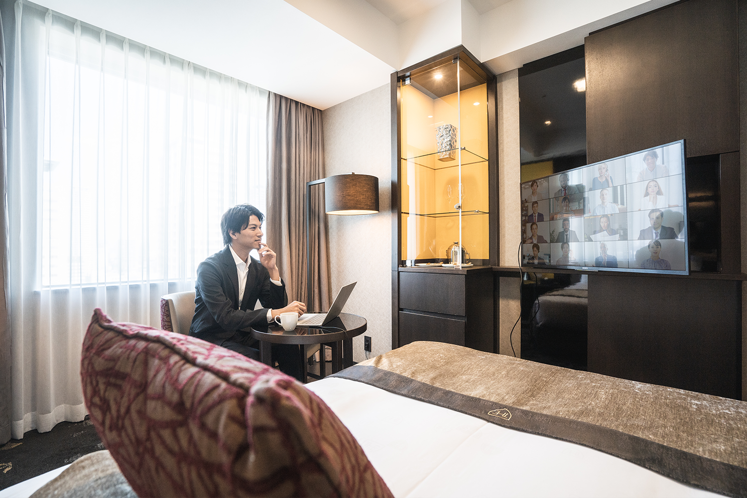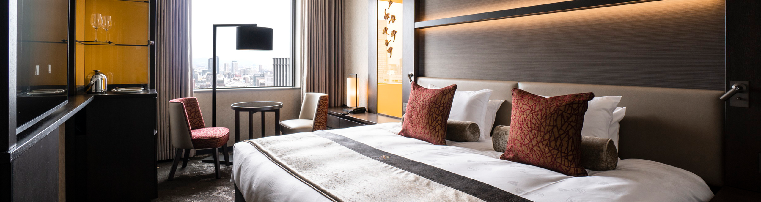 淀屋橋・本町という大阪のビジネスエリアで、出張にも使いやすい機能性と快適性を兼ね備えた客室。