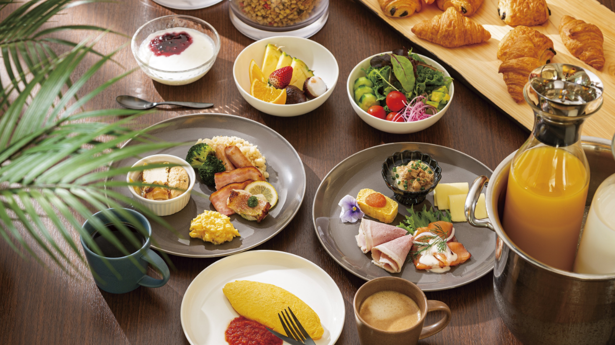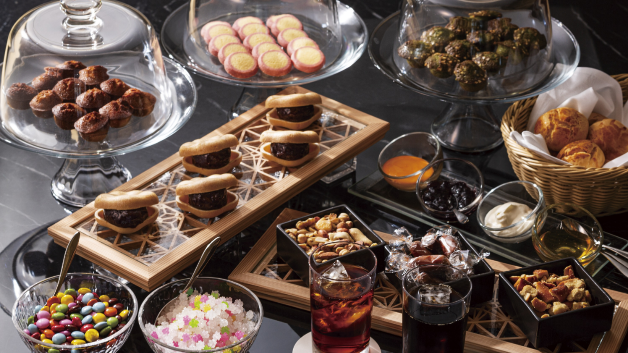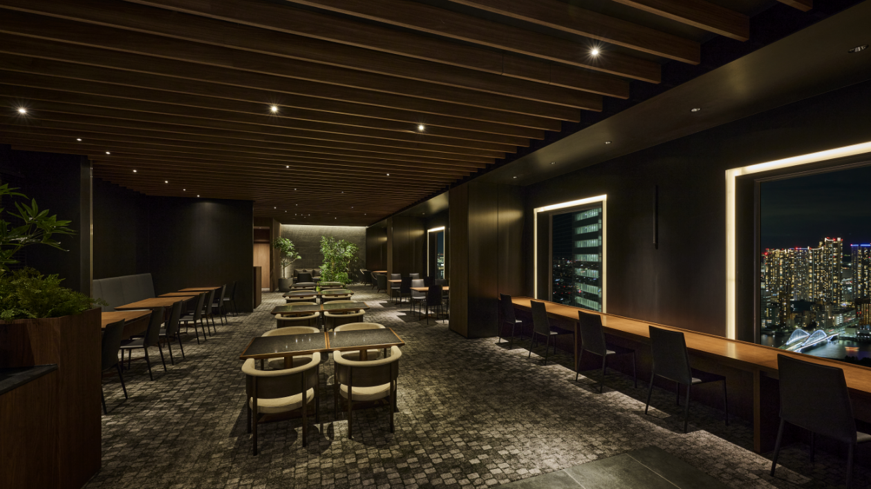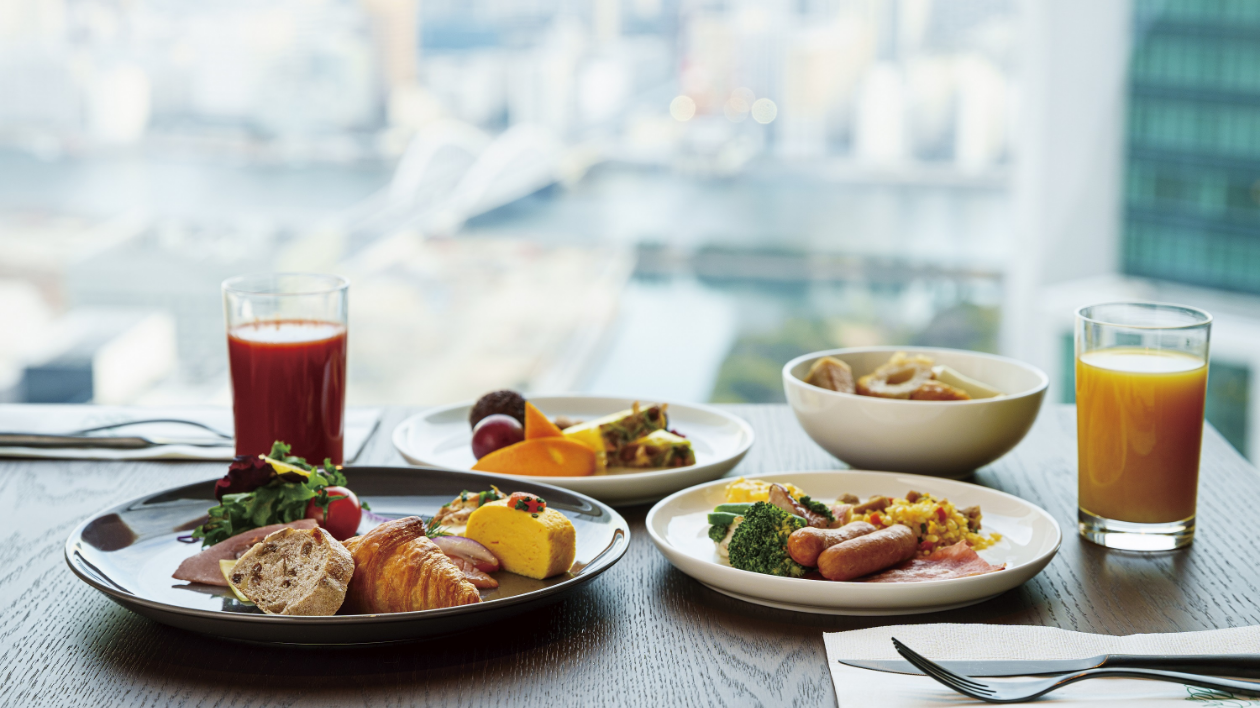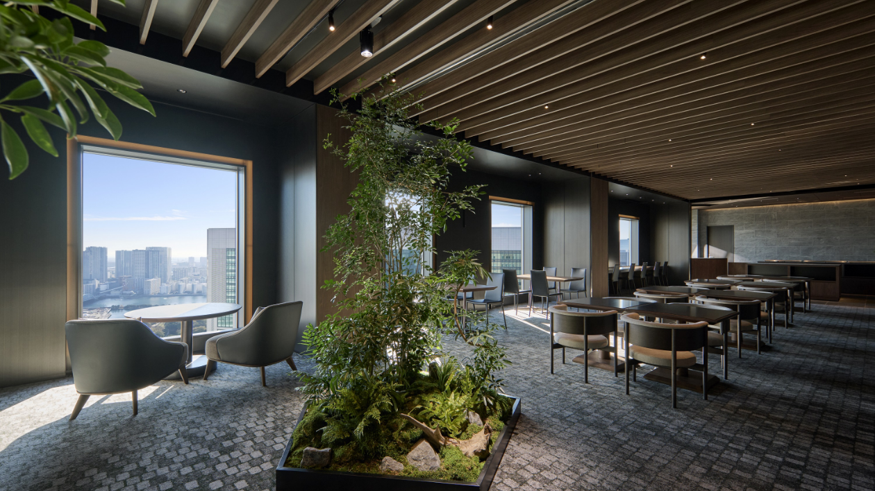 朝食、リフレッシュメントタイム、カクテルタイムを提供します。大きくとった窓からは緑豊かな浜離宮恩賜庭園や