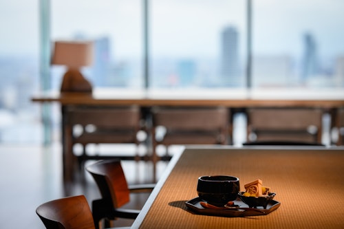 【ザ ロイヤルパークホテル アイコニック 名古屋】冬の青空を眺めながら味わう、香り豊かな抹茶ぜんざい/天空の茶室で余白を愉しむ時間を
