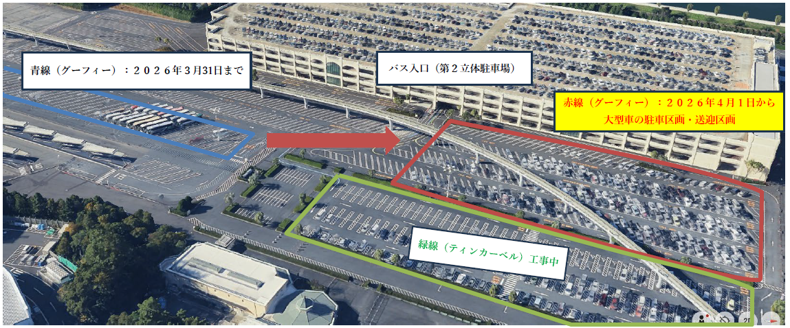 2026年4月1日(水)より、東京ディズニーランドのシャトルバス乗降場位置が変更となります。ご利用のお客様はお間違いのないようご注意ください。