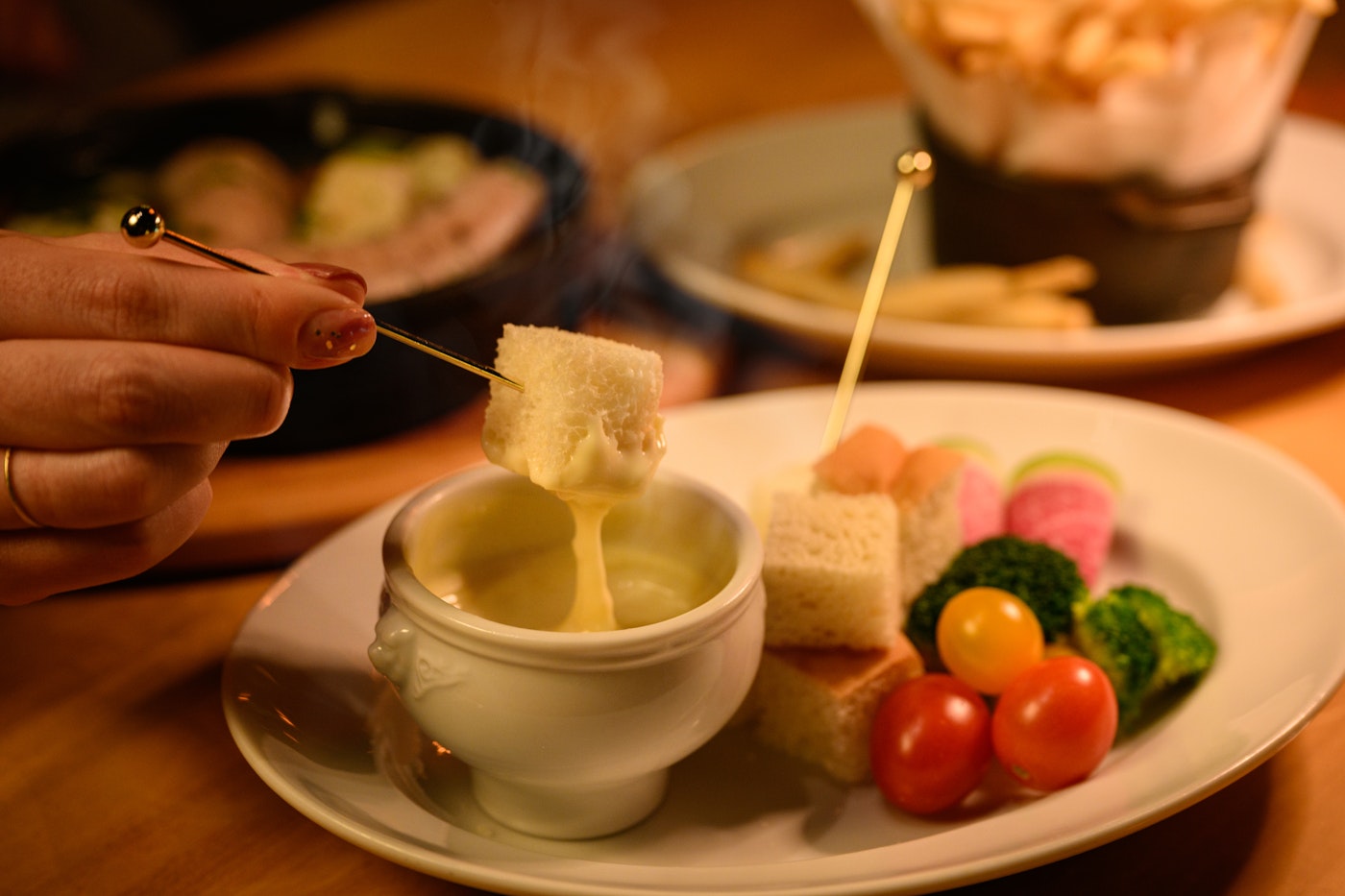濃厚でクリーミーな味わいが楽しい「チーズフォンデュ」や、愛知県産生フランクのポトフなど、テラスプランも冬仕様でご用意