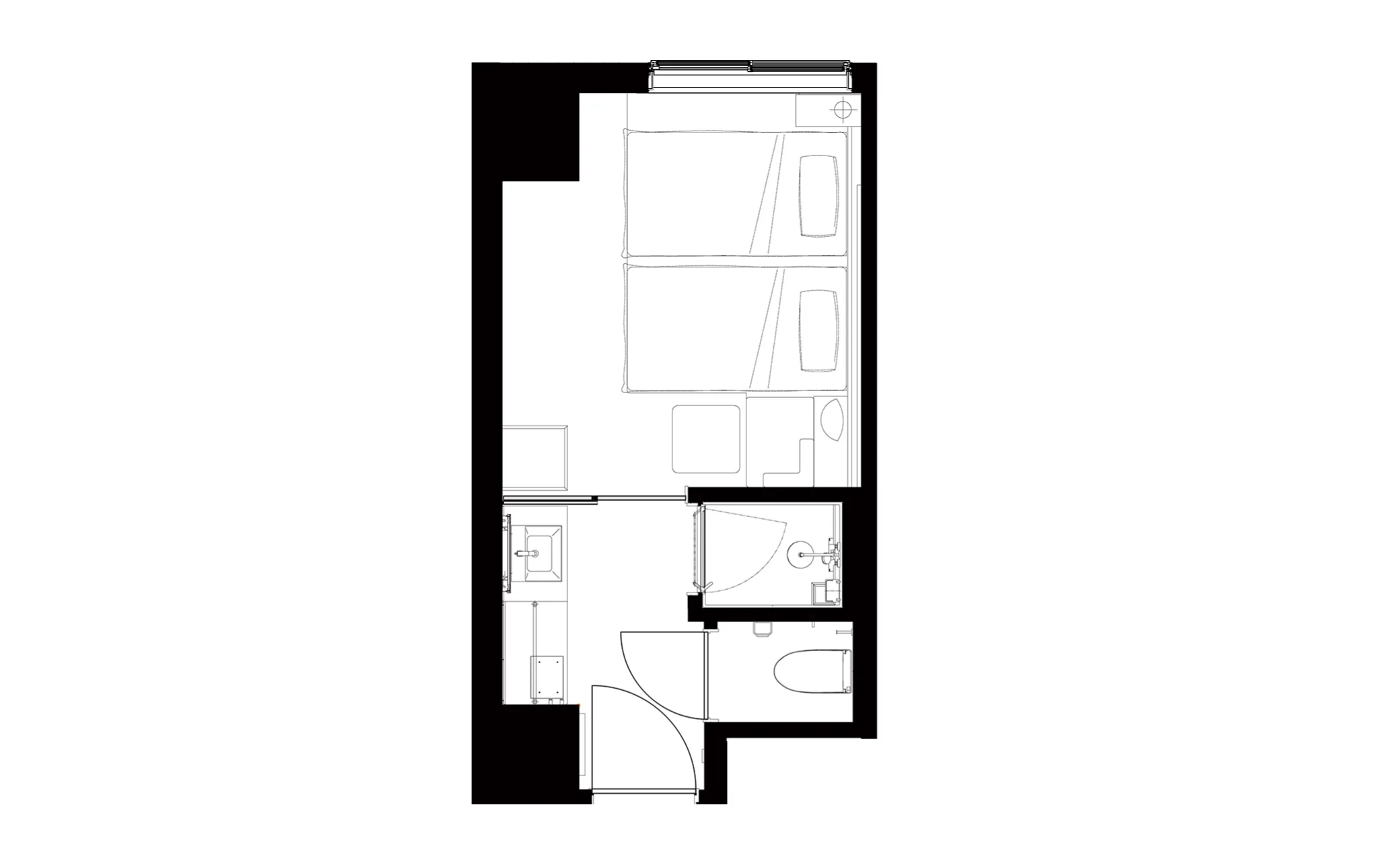 沐浴泡沫的客房。當你打開門時,天花板上的金色會擴散。從天花板連接到墻壁和地毯的顏色被切割為氣泡葡萄酒被倒入的時刻的主題,並且設計讓您感受到沐浴處理器的體驗。