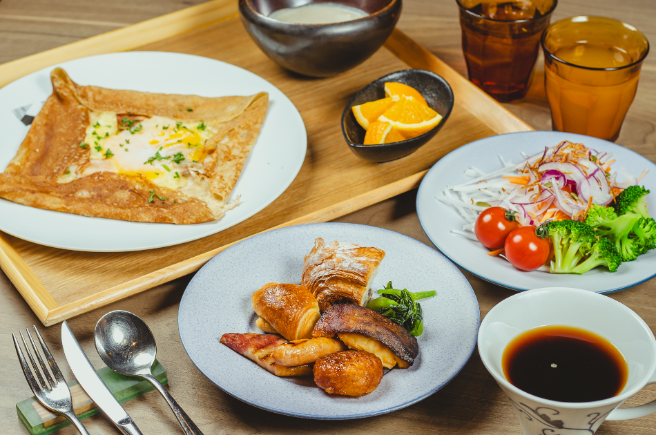 主盤國王餅是使用北海道產的優質粗糧、雞蛋、培根,在開放式廚房中一一精心烘烤而成。享用半自助餐,包括新鮮沙拉、烤蔬菜和當地喜愛的麵包店“Donguri”的麵包,一邊欣賞季節變化的大通公園,一邊度過健康的早晨。