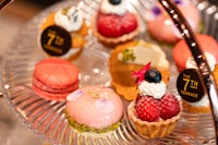いちごの赤とピスタチオのグリーンが映える、ホリデーシーズンにぴったりなスタンドに。