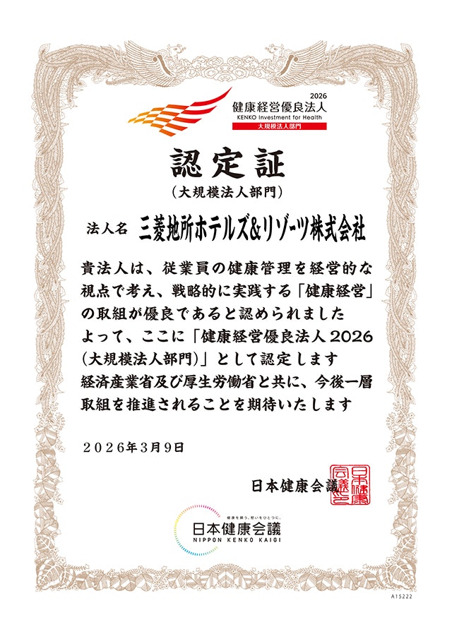 基於這個價值觀,三菱地所酒店及度假村將員工的健康和福祉放在首位,並努力與整個組織共同成長。